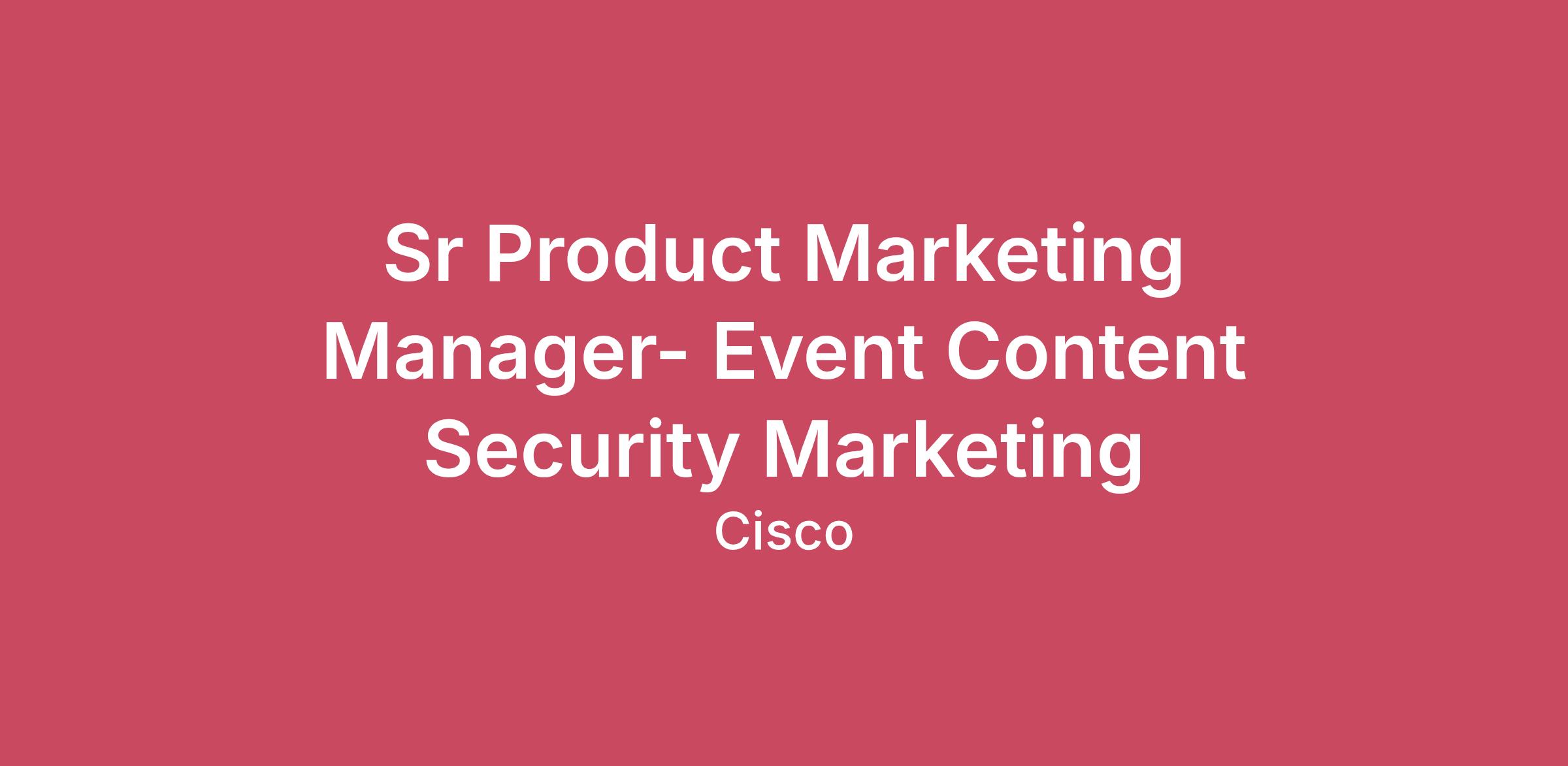 The application window is expected to close on: 02/27/2026Job posting may be removed earlier if the position is filled or if a sufficient number of applications are received.Remote United StatesYour ImpactWe’re looking for a product marketing professional who can blend creative storytelling with sharp strategic execution to help shape the future of Security Marketing. In today’s digital-first world, product launches aren’t just announcements—they’re the moments that define innovation, capture market attention, and fuel business growth. This role is not only about crafting powerful strategies and narratives but also about driving them forward with rigor and operational excellence. You’ll use data-driven insights to shape compelling stories, while ensuring flawless execution that turns vision into measurable impact.You will work cross-functionally to: -Define the launch payload and determine the optimal timing and forums to bring it to market.-Craft compelling storylines and narratives that reflect a unified, company-wide perspective.-Execute the launch strategy by ensuring all supporting content and assets are built and delivered.-Partner with the events team to align on event strategy and programming that fully supports the launch.Strategic Responsibilities:-Own and elevate event content strategy to spotlight launch themes and narratives that strengthen market perception.-Guiding event press releases to maximize visibility, media impact, and thought leadership.-Leading the event blog strategy to ensure the right mix of voices and perspectives that extend our influence across audiences.-Defining booth messaging that reinforces strategic value propositions and clearly differentiates us in the market.- Driving the demo strategy—including selection, design, and staffing—to showcase innovation and create memorable customer experiences.-Shaping speaking agendas and curating speakers to reinforce our leadership position and resonate with customer and industry priorities.-Creating and scaling "Know Before You Go" (KBYG) enablement to equip staff with the narratives, payloads, and messaging required to drive consistency and confidence.- Leading program management and quality control to ensure every content initiative is executed to the highest standard and delivers measurable business impact.Minimum Qualifications-10+ years of experience in product and/or solution marketing, with a focus on storytelling, content development, and content strategy or editorial leadership—ideally within cybersecurity, enterprise technology, or B2B SaaS.-Event operations experience required for consideration.-Proven self-starter with a passion for strategic excellence, audience engagement, and a strong bias for action.-Exceptional project execution skills with meticulous attention to detail and a proactive, risk-mitigation mindset.-Proficiency with marketing automation (including Generative AI), strategic optimization tools (e.g., JIRA), and digital analytics platforms.-Demonstrated success operating within large, matrixed organizations, with the ability to build consensus, influence stakeholders, and drive decision-making at scale.Preferred-MBA, preferably from a top tier university-Foundational understanding of security concepts, including the following domains: network security, secure access, security analytics and response, and identity.-Possesses an understanding of AI technologies and applications with a strong desire to stay updated on the latest advancements and trends.-Strong organizational and strategic thinking skills, with experience in managing marketing budgets and ensuring compliance with legal standards Why Cisco? At Cisco, we’re revolutionizing how data and infrastructure connect and protect organizations in the AI era – and beyond. We’ve been innovating fearlessly for 40 years to create solutions that power how humans and technology work together across the physical and digital worlds. These solutions provide customers with unparalleled security, visibility, and insights across the entire digital footprint.Fueled by the depth and breadth of our technology, we experiment and create meaningful solutions. Add to that our worldwide network of doers and experts, and you’ll see that the opportunities to grow and build are limitless. We work as a team, collaborating with empathy to make really big things happen on a global scale. Because our solutions are everywhere, our impact is everywhere. We are Cisco, and our power starts with you. Message to applicants applying to work in the U.S. and/or Canada:The starting salary range posted for this position is $196,000.00 to $247,000.00 and reflects the projected salary range for new hires in this position in U.S. and/or Canada locations, not including incentive compensation*, equity, or benefits.Individual pay is determined by the candidate's hiring location, market conditions, job-related skillset, experience, qualifications, education, certifications, and/or training. The full salary range for certain locations is listed below. For locations not listed below, the recruiter can share more details about compensation for the role in your location during the hiring process.U.S. employees are offered benefits, subject to Cisco’s plan eligibility rules, which include medical, dental and vision insurance, a 401(k) plan with a Cisco matching contribution, paid parental leave, short and long-term disability coverage, and basic life insurance. Please see the Cisco careers site to discover more benefits and perks. Employees may be eligible to receive grants of Cisco restricted stock units, which vest following continued employment with Cisco for defined periods of time.U.S. employees are eligible for paid time away as described below, subject to Cisco’s policies:10 paid holidays per full calendar year, plus 1 floating holiday for non-exempt employees1 paid day off for employee’s birthday, paid year-end holiday shutdown, and 4 paid days of