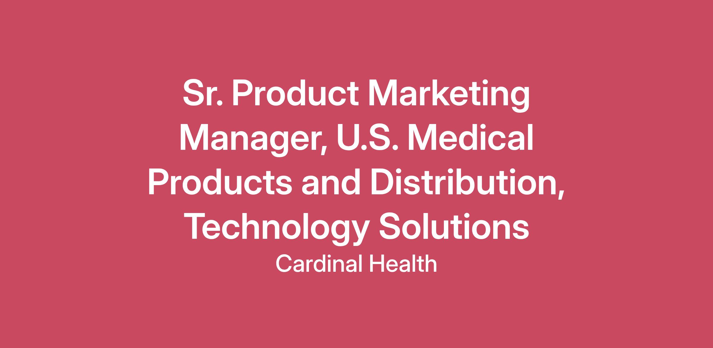 This position is remote and can be based anywhere within the United States. Ideal candidates will be based near the Dublin, OH, office.What Product or Services Marketing contributes to Cardinal HealthProduct Marketing assesses customer needs, market conditions, and competition to inform business strategy. It then implements the strategy by developing, commercializing, and monitoring the appropriate products and services.Product & Solutions Marketing is responsible for defining the product/service and market strategy and managing the life cycle, including customer need identification, market research, product or service offering, pricing, positioning, promotion, branding, and distribution, to drive customer loyalty, sales growth, and improved profitability.Job SummaryThe Sr. Product Marketing Manager, U.S. Medical Products & Distribution, Technology Solutions leads the development and implementation of marketing plans for the U.S. Distribution business technology solutions portfolio. The primary responsibility is to understand the industry landscape and customer needs, and to develop, differentiate, and commercialize innovative technology solutions that deliver unique value to customers. These solution strategies should integrate with the U.S. Medical Products & Distribution value proposition to drive revenue, accelerate growth, and enhance the profitability of the U.S. Medical Products & Distribution business.ResponsibilitiesPortfolio Leadership: Manage the full lifecycle of technology solutions, including financial performance, roadmap, development, and commercialization, ensuring alignment with business goals.Innovation & Differentiation: Drive the creation of innovative and differentiated technology solutions that address distribution customer challenges and deliver measurable value.Market & Customer Insight: Understand the distribution industry, customer needs, and emerging trends to inform solution strategies and ensure relevance and competitiveness.Strategic Integration: Align technology solutions with the broader U.S. Medical Products & Distribution value proposition to strengthen market positioning and accelerate growth. Cross-Functional Collaboration: Partner with product management, sales, operations, and IT teams to ensure seamless development and launch of technology solutions.Performance Measurement: Define KPIs and reporting mechanisms to evaluate solution adoption, customer impact, and financial performance.Thought Leadership: Represent the technology solutions portfolio in customer engagements, industry forums, and internal strategy discussions to advocate for innovation and differentiation.Financials and Performance MetricsTracking the financial progress to measure their effectiveness and monitor performance metricsRegular report-outs to management with insights and recommended actions to exceed financial commitments.Prepare reports and presentations on product performance and market insights for stakeholders.Product Marketing and GTM StrategiesDevelop compelling product positioning and messaging that differentiates the product in the market.Create value propositions that resonate with target customer segments.Plan and execute go-to-market strategies for new product launches, including timelines and messaging, Coordinate with cross-functional teams (IT & development, enablement, operations, sales, etc.) to ensure a successful launchProvides product market insights through a strong working knowledge of the distribution solutions portfolio, market trends, competitive behavior, and customer segments. Develop and execute marketing strategies. Create value propositions that resonate with target customer segments Developing pricing, product, and solution positioning strategies to optimize revenue and profitability.Drive promotional activity through Marketing Communications and Channel Marketing to sales to meet overall objectives.Identify and access potential new opportunities to expand market reach through product roadmap Create marketing materials and tools tailored to the specific customer needs. This includes co-branded materials, sales presentations, and product information that aligns with the overall brand messaging.Developing training and content to support sales and selling distribution effectively - Continuous training in product updates and market trends to keep the business informed.Partner with content team and customer solutions teams to develop customer case studies and white papers Collaborate with sales and cross-functional counterpartsTravels with field sales to provide support and help defend and grow business with key customers.Develop partnerships with broader Cardinal Health marketing and functional teams to support the objectives the Cardinal Health USMPD business identified.Ensures that marketing strategies are effectively executed at the channel levelGather VOC on market conditions, competitive landscape, and customer needs. Communicate cross-functionally for strategy refinementAdvance, maintain, and implement training, support programs, and sales tools for the selling organization and channel.Market Intelligence and Insights, including competitive analysisProviding channel insights into competitive products and market trends to better position distribution and address customer needs more effectively.Sharing customer feedback and insights with channel partners enables them to tailor their approaches and improve customer experience across USMPD Sales EnablementPartner with content marketing to develop sales training materials and tools that equip the sales team with the knowledge to sell the product effectivelyContinued collaboration with the sales and solutions team to gather insights to refine messaging and product.QualificationsBachelor's degree from an accredited university preferred; an MBA is preferred8-10 years of experience in Distribution, Supply Chain, and/or Healthcare Marketing preferredSelf-motivated, entrepreneurial, independent, driven in