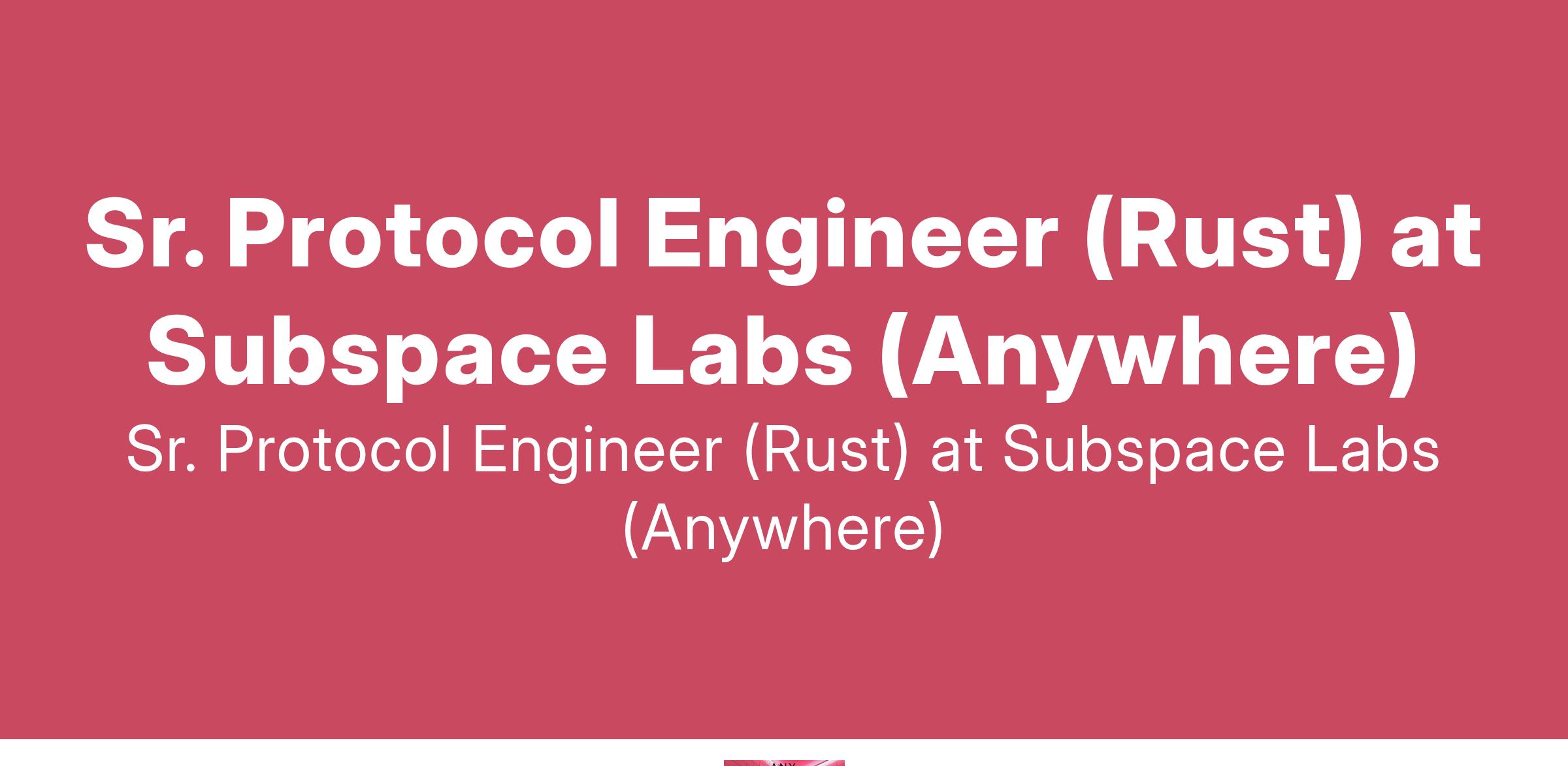 Sr. Protocol Engineer (Rust) at Subspace Labs (Anywhere)