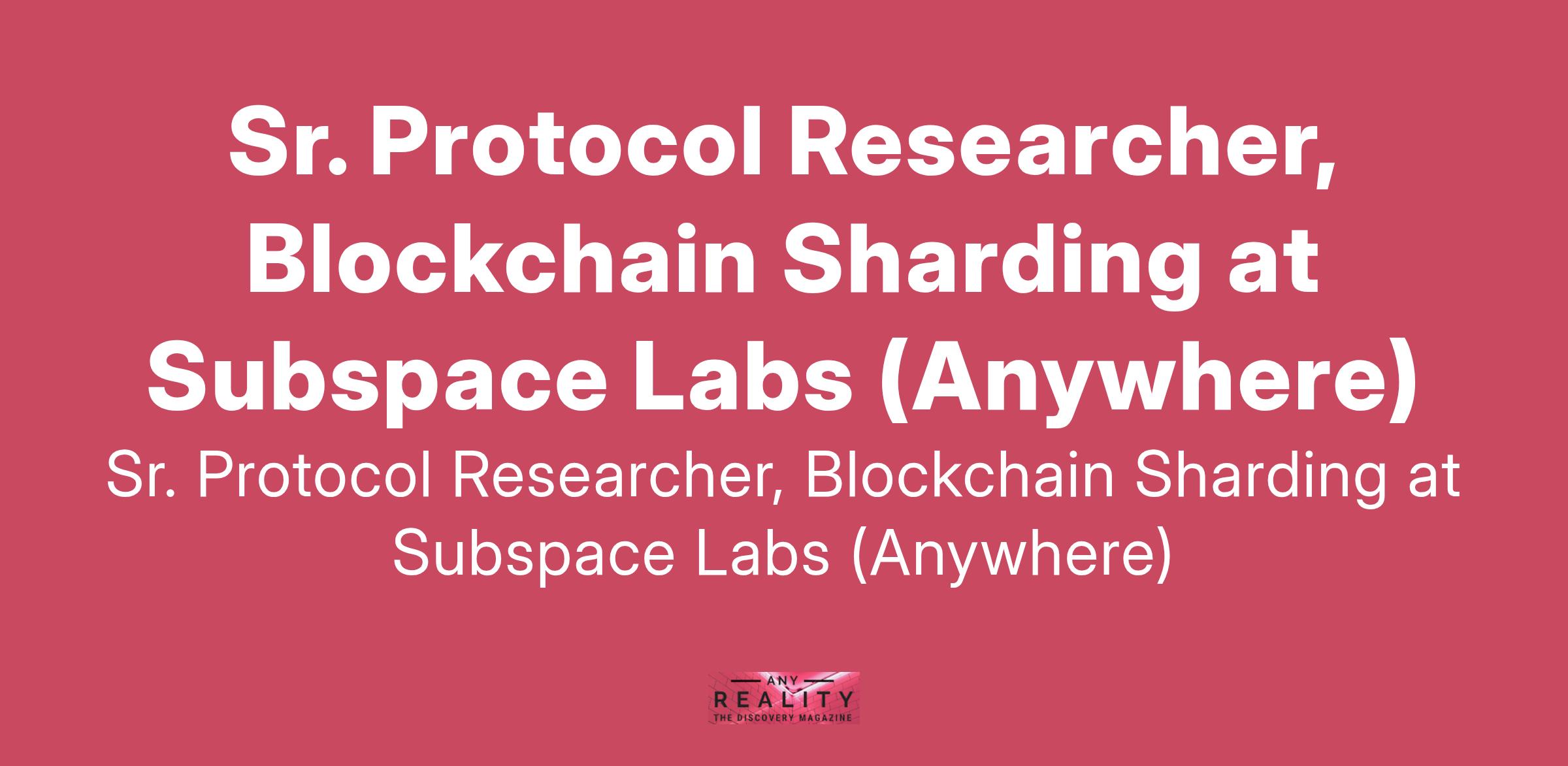 Sr. Protocol Researcher, Blockchain Sharding at Subspace Labs (Anywhere)