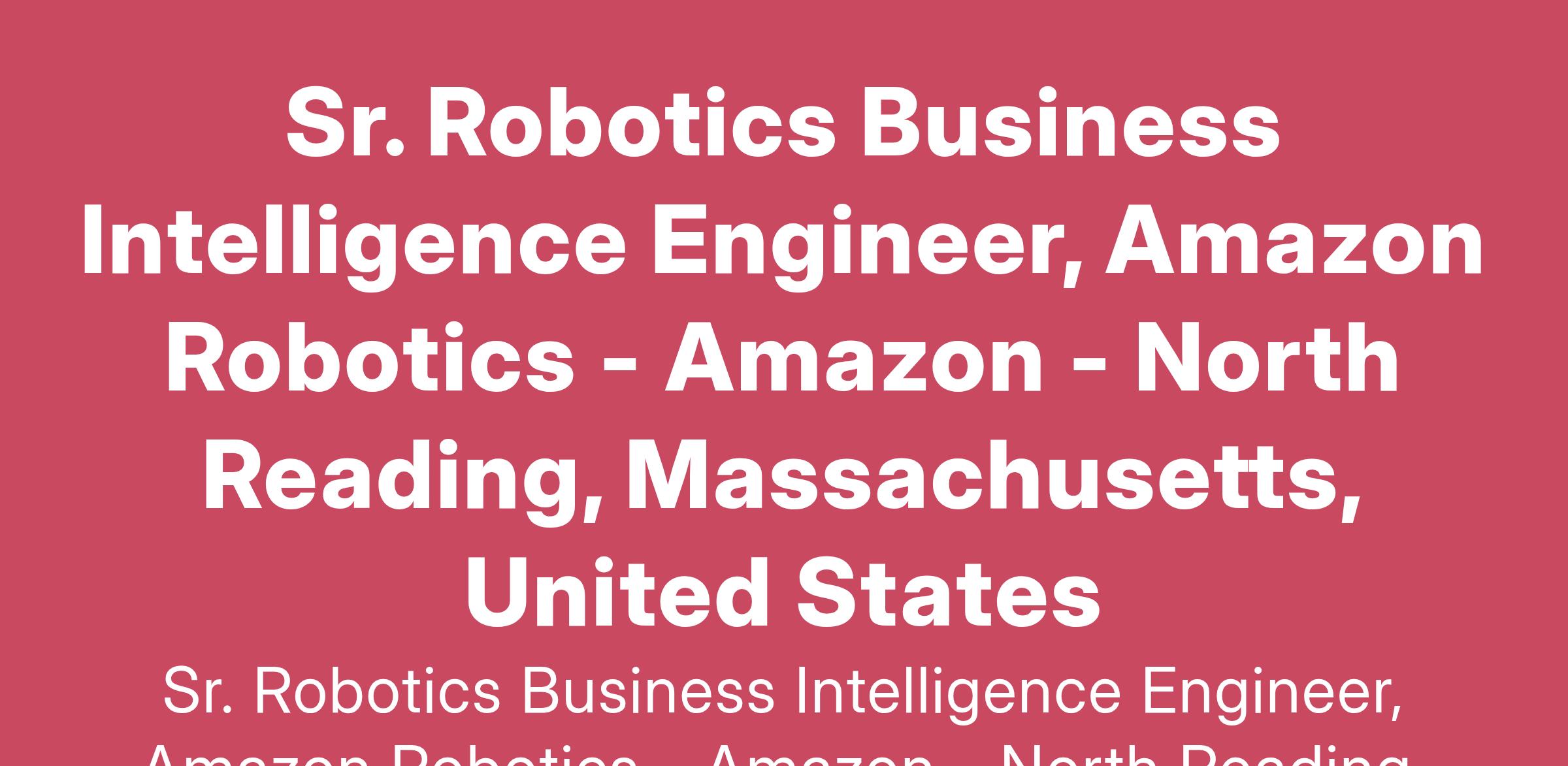 The Amazon Robotics Business Intelligence, Analytics, and Data Science team discovers insights in vast and varied robotic data to support decision-making for engineering and operations customer teams. We collaborate with designers, software and hardware engineers, and operations teams to understand system performance, make feature and design trade-offs, and inform decisions on new applications of Amazon Robotics technology. We conduct relevant, insightful analysis and communicate the results through white papers and data visualizations. Our methods include design of experiments, statistical modeling, machine learning, financial analysis, and data visualization.