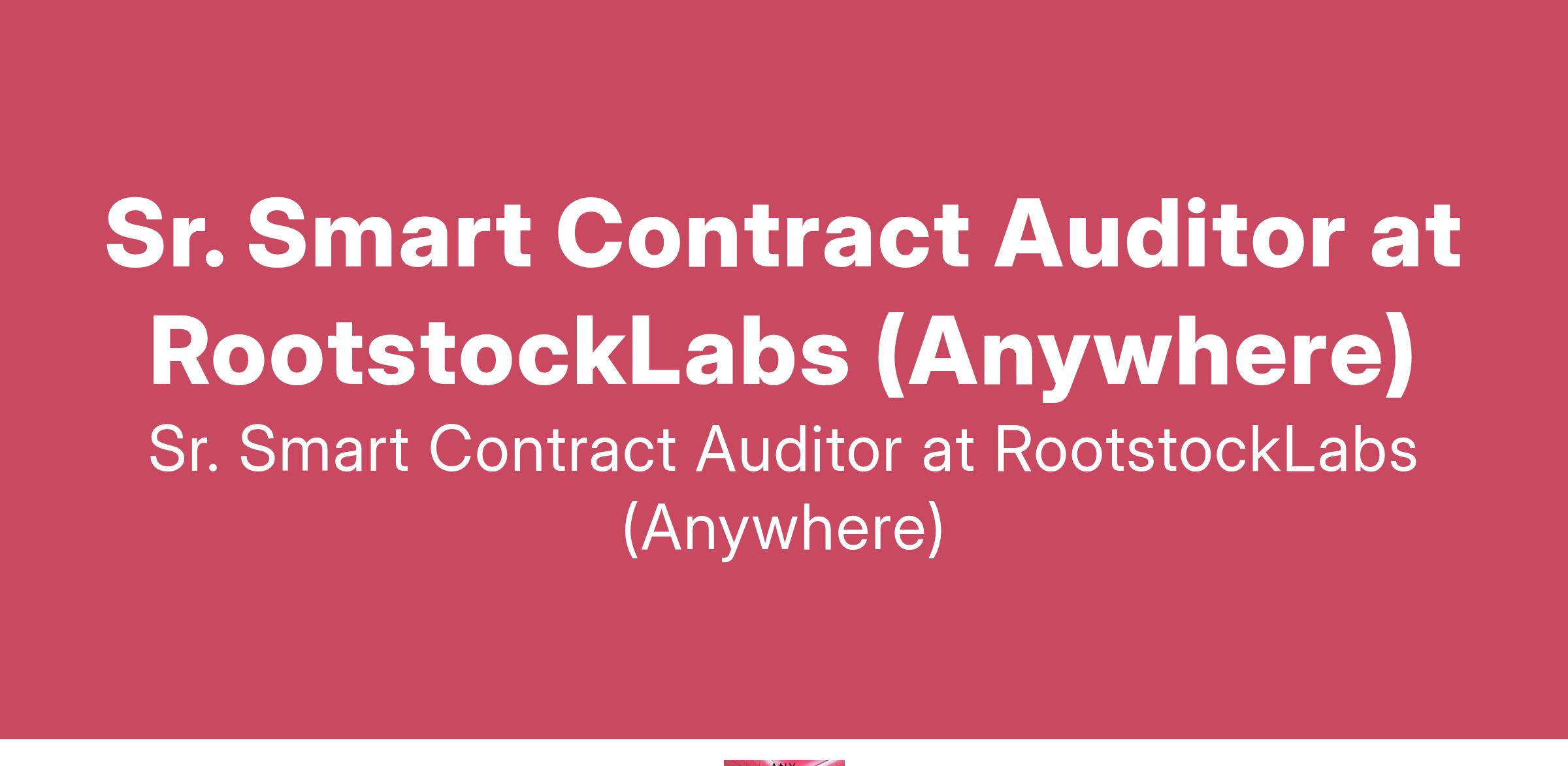 Sr. Smart Contract Auditor at RootstockLabs (Anywhere)