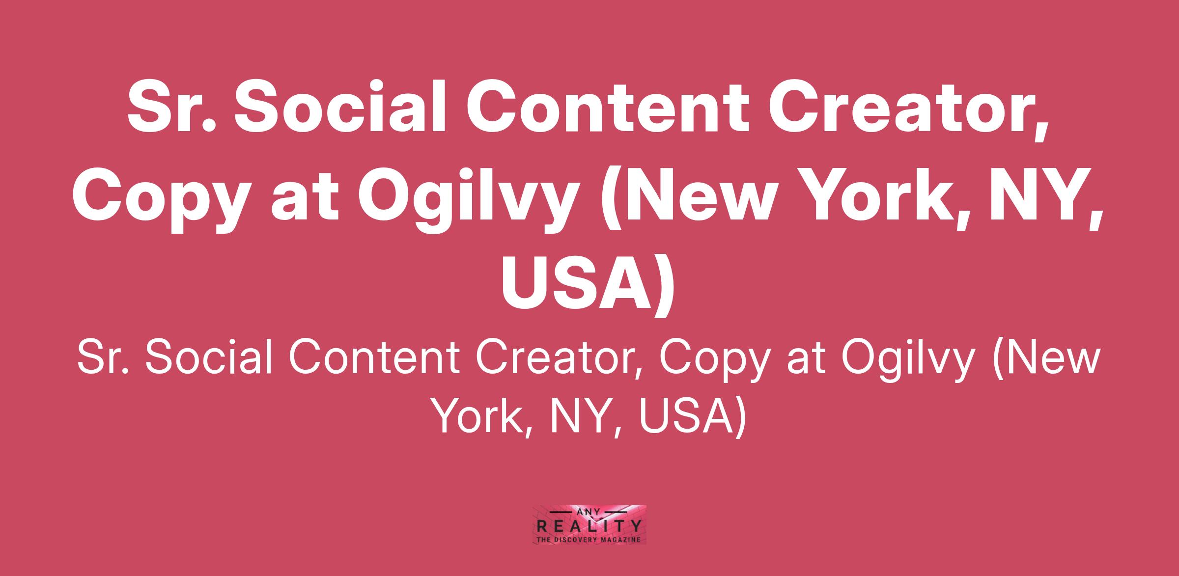 Sr. Social Content Creator, Copy at Ogilvy (New York, NY, USA)