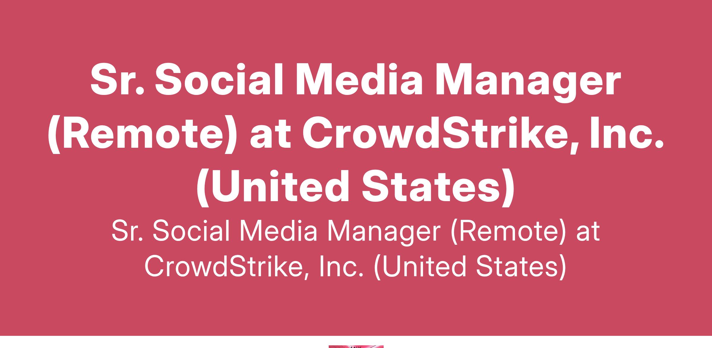 Sr. Social Media Manager (Remote) at CrowdStrike, Inc. (United States)