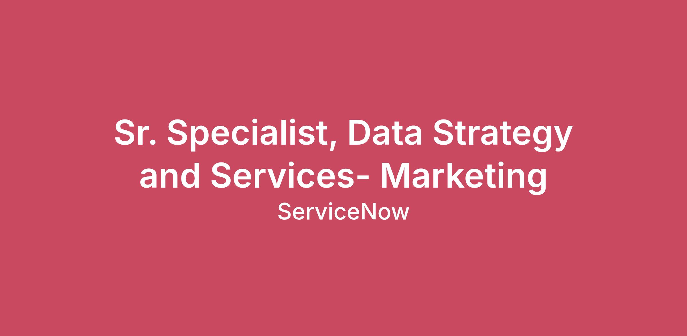 Sr. Specialist, Data Strategy and Services- Marketing
