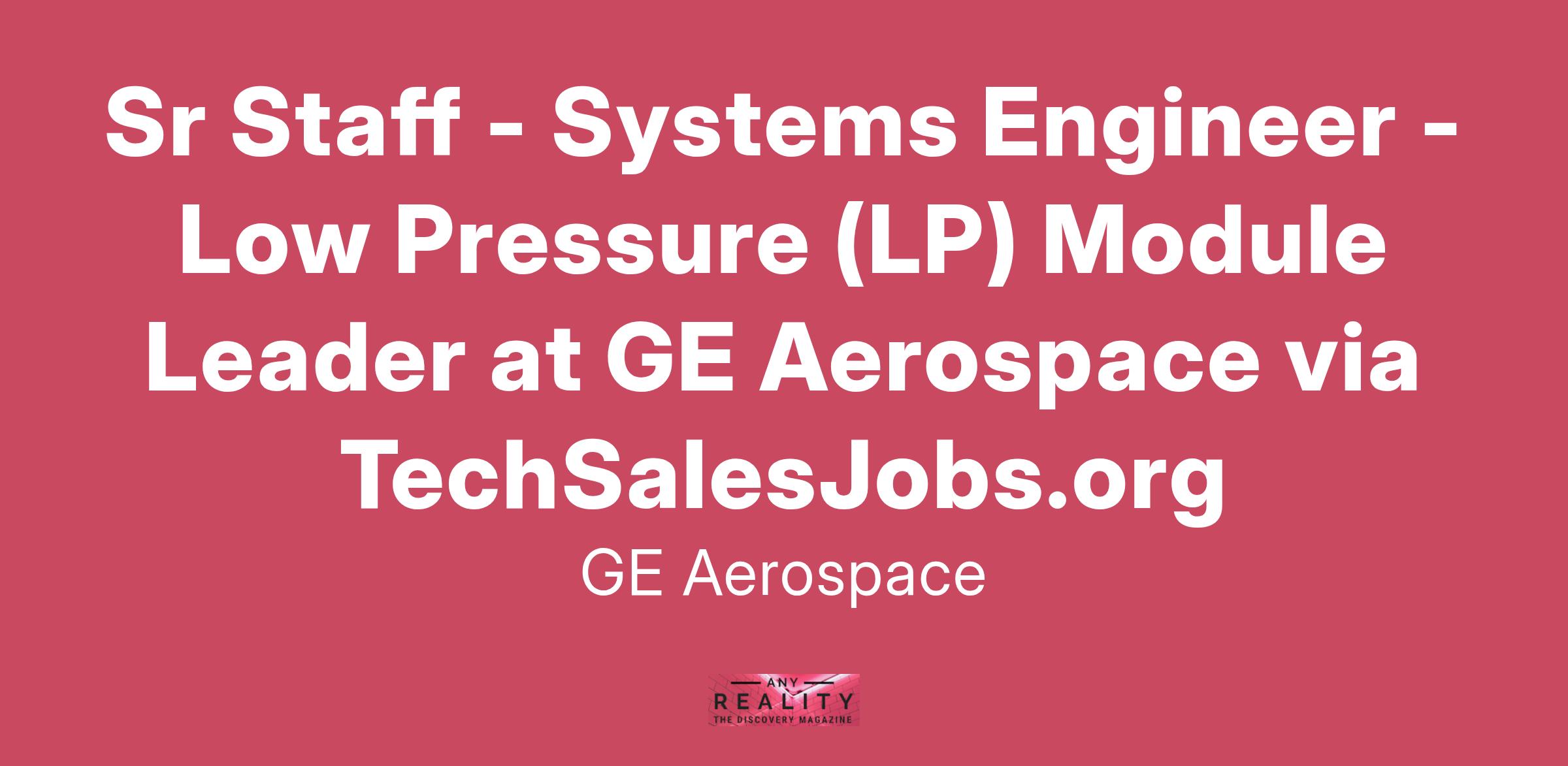 Sr Staff - Systems Engineer - Low Pressure (LP) Module Leader at GE Aerospace via TechSalesJobs.org
