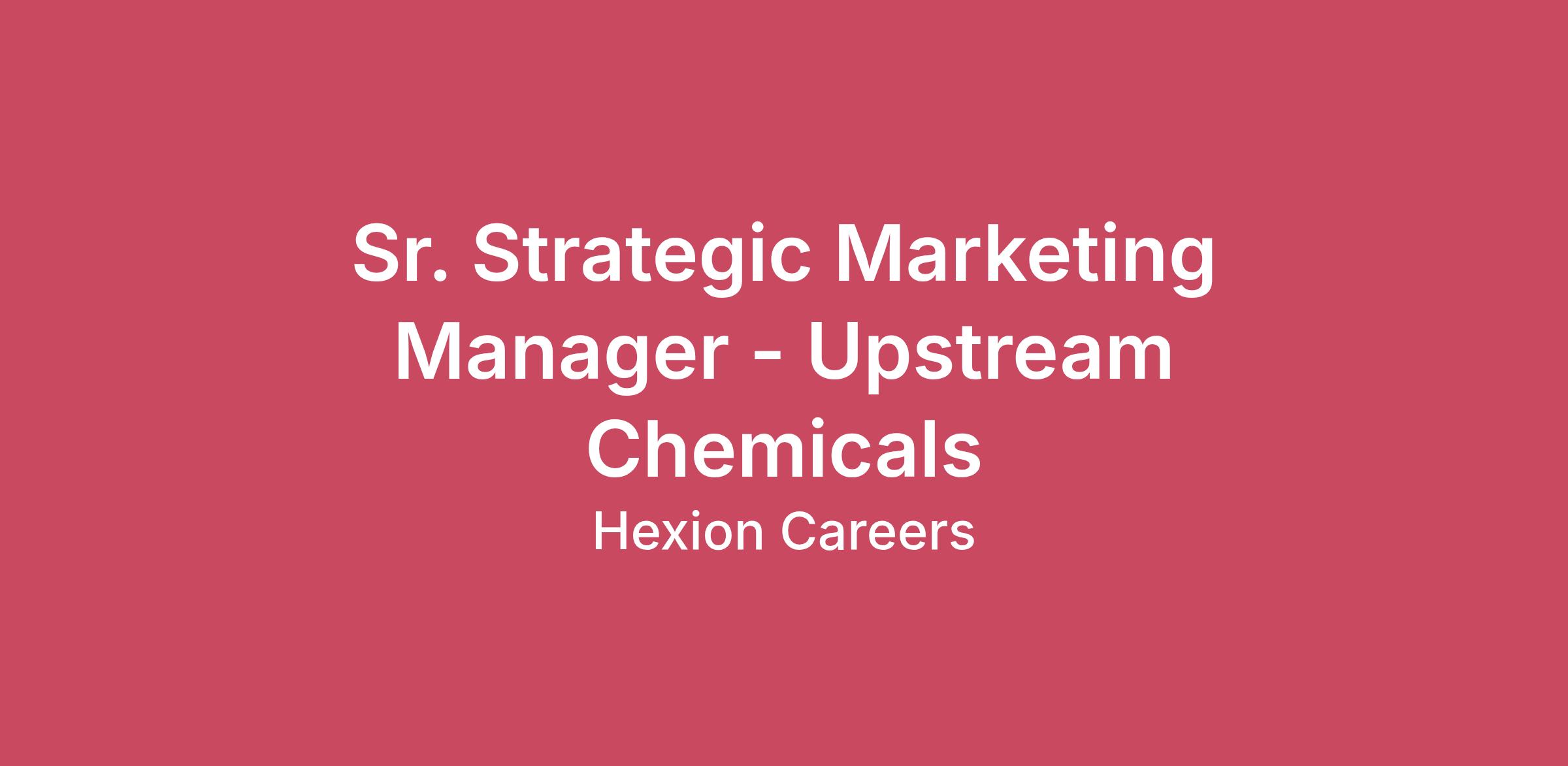 Company Overview Imagine Everything. Build the Future with Hexion. At Hexion, we push boundaries, rethink possibilities, and create real impact. We activate science to deliver progress—developing breakthrough solutions that strengthen industries, protect communities, and drive a more sustainable future. This is where bold thinkers, problem-solvers, and innovators come together to shape what’s next. Whether you're engineering advanced materials, transforming manufacturing technologies, or leading strategic innovation, your ideas and actions leave a lasting mark. We cultivate an inclusive culture of growth, collaboration, and accountability, ensuring every contribution propels us forward. We don’t follow the status quo—we challenge it, disrupt it, and improve it. Every role at Hexion is part of something bigger. We invest in innovation, sustainability, and continuous development—equipping you with the tools, training, and opportunities to excel. With an unwavering commitment to safety, partnership, belonging, and impact, we empower you to lead change and strengthen industries worldwide. Your Future Starts Here. If you’re ready to push limits, reimagine what’s possible, and create the extraordinary, Hexion is where you belong. Anything is possible when you imagine everything. Position Overview Responsible for developing and executing market strategies that drive profitable growth and increase share for the Oilfields market segment in Natural Resources Business Unit. This is a remote position and can be located anywhere in the US. Job Responsibilities Strategic Market Plans: Create and maintain market segment growth plans utilizing WTP and HTW methodology Develop and implement customer segmentation and targeting strategies to optimize marketing and sales efforts Engage with customers, across the value chain and with industry experts to identify unmet needs and gain key insights Conduct thorough market research, in partnership with the strategic marketing team, to identify new growth opportunities Monitor and analyze market, industry and competitive trends, providing insights and recommendations to inform future marketing strategies Grow the Business: Collaborate with cross-functional teams, including sales, technology, marketing and finance, to ensure alignment and successful implementation of strategic market segment plans Identify and execute on pricing and variable margin improvement opportunities Expand the core – innovate to expand offerings and customers for the Oilfields market segment Provide recommendations to develop and prioritize innovation ideas and projects to deliver, capture, and maintain value Identify and pursue growth through research and actively seeking out new sales opportunities Assist in creation of a growth pathway and go-to-market strategies for new products and achieve financial targets Support marketing campaigns and leads development for growth initiatives in partnership with marketing communication managers Participate in industry conferences, trade shows, and networking events to generate leads and build brand awareness Knowledge, Skills, Attributes and Experience (KSAEs) Knowledge and Skills Bachelor’s degree, preferably in chemistry or related field MBA with Marketing or Strategy concentrations preferred Knowledge of Hydrogen Sulfide (H2S) Scavenger products Attributes Strong marketing capabilities in a range of marketing excellence tools Expertise in communications / presentations Strong collaboration skills to build relationships internally and in the industry Taking personal responsibility and ownership Bias for action Entrepreneurial mindset Experience 7+ years experience in Oil and Gas industry, preferably in marketing or business development Experience developing and executing market strategies that drive profitable growth and increase share for hydrogen sulfide scavenger products Experience conducting Market Research to determine GTM, How-to-Play and How-to-Win strategies Experience in strategic marketing or strategic consulting is strongly recommended/preferred Strong financial acumen Experience navigating a matrix organization, driving alignment to build new growth platforms and/or implement business transformation projects Other We are an Equal Opportunity, Affirmative Action employer. All qualified applicants will receive consideration for employment without regard to gender, pregnancy, race, national origin, religion, age, sexual orientation, gender identity, veteran or military status, status as a qualified individual with a disability or any other characteristic protected by law. To be considered for this position candidates are required to submit an application for employment through our career site and, be at least 18 years of age. Any offer of employment will be conditioned upon successful completion of a drug test and background investigation, as well as authorization for the Company to conduct additional periodic background checks as required by the Chemical Facility Anti-Terrorism Standards (CFATS) or regulations adopted by the department of Homeland Security or other regulatory agencies. A prior criminal record is not an automatic bar to employment, and the Company will conduct an individualized assessment and reassessment, consistent with applicable law, prior to making any final employment decision.