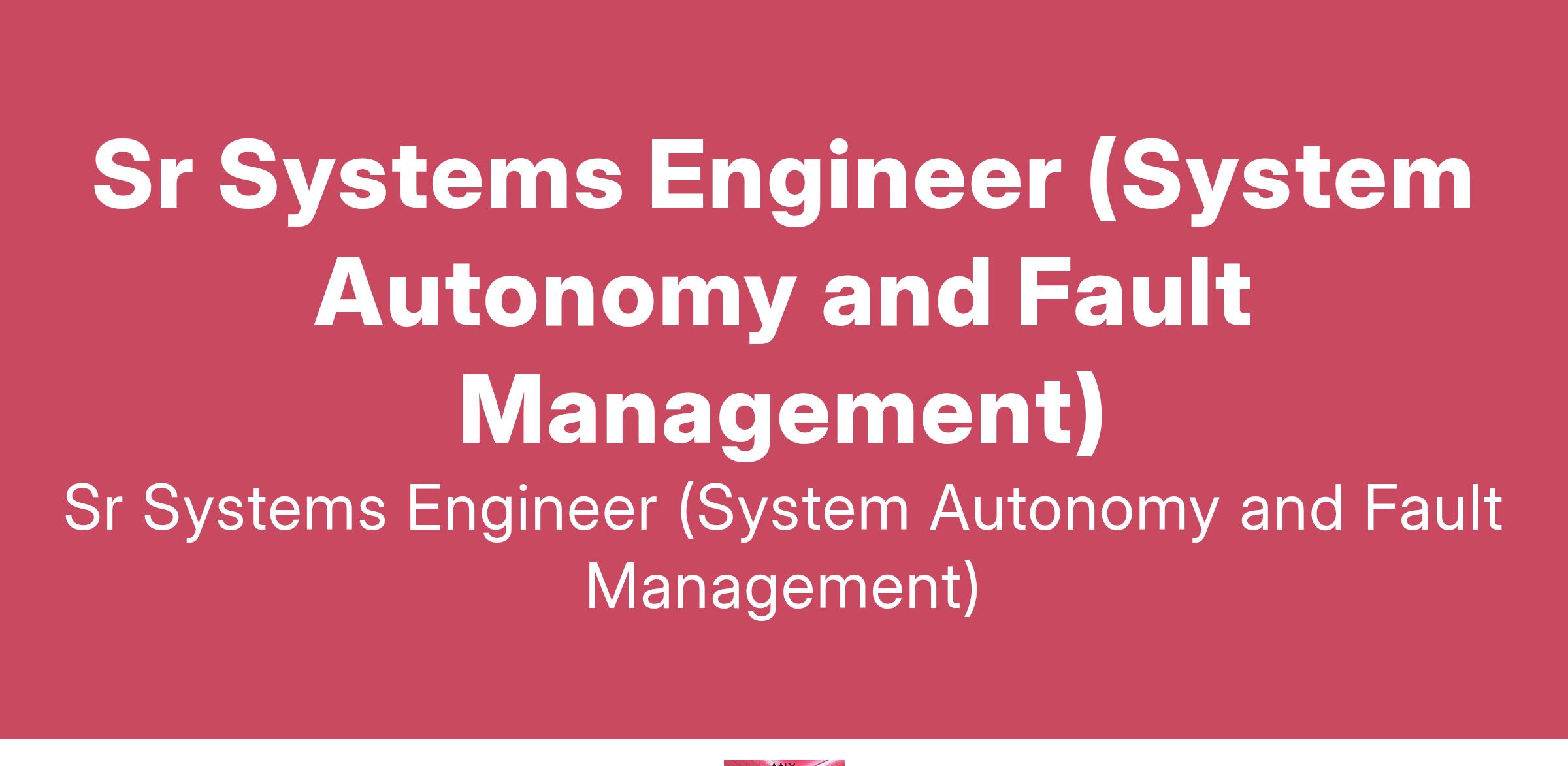 Sr Systems Engineer (System Autonomy and Fault Management)
