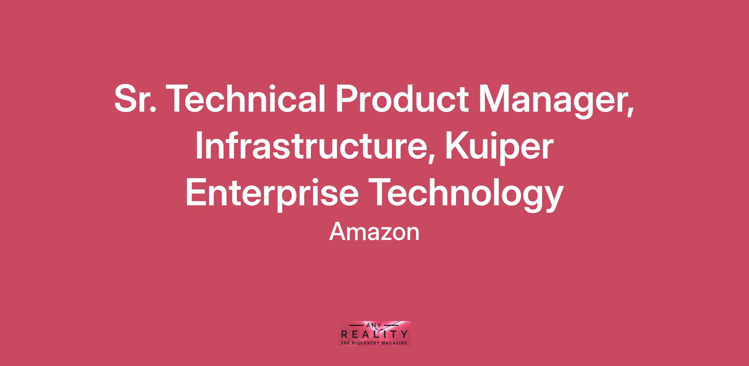 Project Kuiper is Amazon's low Earth orbit satellite broadband network. Its mission is to deliver fast, reliable internet to customers and communities around the world. Hundreds of millions of people on Earth lack reliable internet access. Project Kuiper will help close the digital divide by delivering fast, affordable broadband to a wide range of customers, including consumers, businesses, government agencies, and other organizations operating in places without reliable connectivity.As a technical product manager within the infrastructure arm of Kuiper Enterprise Technology, you will define and drive the product strategy for Kuiper's critical infrastructure offerings. You'll own the infrastructure service catalog, develop technical roadmaps, and ensure our infrastructure solutions meet the scaling needs of Kuiper's manufacturing, launch, and operations teams. This role combines deep technical expertise with product management discipline to deliver infrastructure solutions that enable Kuiper's ambitious growth plans.Export Control: This position requires selected candidates to be a U.S. Citizen in order to comply with U.S. government-imposed requirements related to the nature of the work and/or where it will be performed.Key job responsibilities • Own and evolve the infrastructure service catalog and technical roadmap • Define infrastructure product offerings with clear SLAs, specifications, and lifecycle management • Develop basis-of-design standards and playbooks for infrastructure deployments • Partner with system engineers and developers to ensure technical feasibility and scalability • Drive standardization of infrastructure solutions across global operations • Create and maintain product requirements documents and technical specifications • Lead infrastructure architecture decisions and technical direction • Collaborate with stakeholders to understand requirements and validate solutions • Manage infrastructure product lifecycle from concept through deployment • Define and track key performance metrics for infrastructure offeringsA day in the life • Meet with manufacturing and launch teams to understand infrastructure needs • Review and refine infrastructure product specifications • Collaborate with engineering teams on technical implementation approaches • Develop and present roadmap updates to steering committee • Work with security and compliance teams to ensure requirements are met • Review and approve infrastructure design standards • Engage with vendors to evaluate infrastructure solutions • Guide development of automation and scaling strategies • Create and maintain product documentationAbout the teamThis is a newly created team responsible for delivering critical infrastructure that enables Kuiper's business across manufacturing, launch, and operations. We operate with a builder mindset, focusing on frugality with leverage through automation. Our team works closely with manufacturing, launch operations, and security partners to ensure infrastructure readiness for Kuiper's ambitious scaling plans.- Bachelor's degree in Computer Science, Engineering, or related field, or equivalent practical experience- Experience in technical product management, solutions architecture, or related field- Experience with infrastructure technologies and solutions- Strong background in systems architecture and engineering- Experience creating and maintaining technical roadmaps- Track record of delivering complex technical products- Excellence in stakeholder management and communication- Experience with product lifecycle management- Strong analytical and problem-solving skills- Ability to travel up to 30% domestically and internationally- Master's degree in technical field- Experience with manufacturing or industrial environments- Background in satellite or aerospace industries- Knowledge of infrastructure-as-code and automation- Experience with cloud platforms (AWS, Azure)- Track record of driving standardization across complex organizations- Experience with security and compliance requirements- Strong technical writing and presentation skills- Background in agile development methodologies- Experience with vendor management and evaluation- Knowledge of SRE practices and principles- Track record of mentoring and leading technical teamsAmazon is an equal opportunity employer and does not discriminate on the basis of protected veteran status, disability, or other legally protected status.Our inclusive culture empowers Amazonians to deliver the best results for our customers. If you have a disability and need a workplace accommodation or adjustment during the application and hiring process, including support for the interview or onboarding process, please visit https://amazon.jobs/content/en/how-we-hire/accommodations for more information. If the country/region you’re applying in isn’t listed, please contact your Recruiting Partner.Our compensation reflects the cost of labor across several US geographic markets. The base pay for this position ranges from $136,100/year in our lowest geographic market up to $235,200/year in our highest geographic market. Pay is based on a number of factors including market location and may vary depending on job-related knowledge, skills, and experience. Amazon is a total compensation company. Dependent on the position offered, equity, sign-on payments, and other forms of compensation may be provided as part of a total compensation package, in addition to a full range of medical, financial, and/or other benefits. For more information, please visit https://www.aboutamazon.com/workplace/employee-benefits. This position will remain posted until filled. Applicants should apply via our internal or external career site.