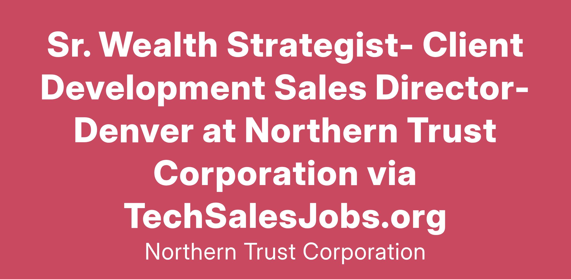 The Wealth Strategist / Client Development Sales Director is responsible for cultivating new relationships with individuals, families, non-profit institutions and other entities. As a member of the Wealth Strategist Northern Trust team, this individual will be responsible for new client development, solutions strategy and execution of the firm’s advice-driven approach. Leveraging our local team of specialists and national resources, the individual will identify prospective clients, present Northern Trust capabilities in conversations and meetings, and follow through to convert prospects to clients. The Wealth Strategist / Client Development Sales Director maintains ongoing contact with clients, promoting the enhancement and expansion of existing relationships. He or she will serve as a brand ambassador in the community, actively engaging as a leader for local civic and philanthropic organizations.