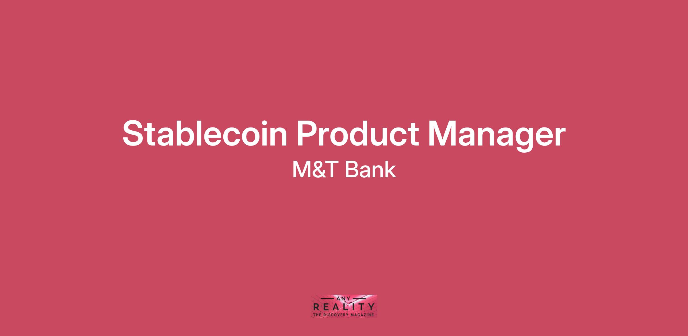 Overview: The Stablecoin Product Manager is responsible for the design, development, and ongoing performance of one or more stablecoin product offering for Commercial and Business Banking clients. The Stablecoin Product Manager collaborates across lines of business, IT, Operations, Risk, and key strategic external partners to deliver secure, scalable, and regulatory-compliant solutions.Primary Responsibilities:Manage all aspects of new product implementation and existing product modifications, including the design and development of new services; Review new developments in markets, evaluating and recommending new services or new products, or the modification of existing services or productsSupport the development of a product vision, strategy, and roadmap for stablecoin offerings, ensuring alignment with business goals and market needs.Develop business case recommendations for investment to executive sponsors.Evaluate market entry alternatives for coin issuance, wallet management, B2B and cross-border payments, reserve management, and crypto settlement services.Establish partnerships with important external entities in the digital asset sector to enhance the Bank's time-to-market and presence in potential business models.Support work to integrate with blockchain infrastructure players, both existing and emerging.Ensure compliance with relevant regulations (e.g., KYC/AML, financial risk management) and coordinate regulatory submissions when required. Support the development of a stablecoin risk management control framework.Gather user feedback, monitor market trends, and analyze key performance metrics to refine products and drive adoption.Education and Experience Required:Bachelor’s degree5 years’ proven marketing, product management, financial, operations and/or project management experience. 1-3 years of product management experience in fintech, payments or blockchain/digital assets sectors is highly desirable.OR in lieu of a degree,A combined minimum of 9 years’ higher education and/or work experience, including a minimum of 5 years’ proven marketing, product management, financial, operations and/or project management experience.Desired Experience:3–6+ years of product management experience in fintech, payments, or blockchain/digital asset sectors.Basic understanding of blockchain technology, stablecoin mechanics (issuance, redemption, collateralization), and smart contracts.Knowledge of regulatory frameworks and compliance requirements for digital assets.Excellent communication, leadership, and cross-functional collaboration skills.Ability to translate complex technical and regulatory concepts into user-centric solutions.Familiarity with stablecoin issuers (e.g., USDC, USDT), blockchain infrastructure players, on-chain analytics, and interoperability protocols.Hands-on expertise with Ethereum, Solana, or other blockchain platforms.This role is ideal for a proactive, detail-oriented individual who is passionate about transforming payments and digital assets through innovative stablecoin solutions.#LI-LA1M&T Bank is committed to fair, competitive, and market-informed pay for our employees. The pay range for this position is $85,104.04 - $141,840.07 Annual (USD). The successful candidate’s particular combination of knowledge, skills, and experience will inform their specific compensation. The range listed above corresponds to our national pay range for this role. The specific pay range applicable to you may vary based on your location.LocationClanton, Alabama, United States of America
