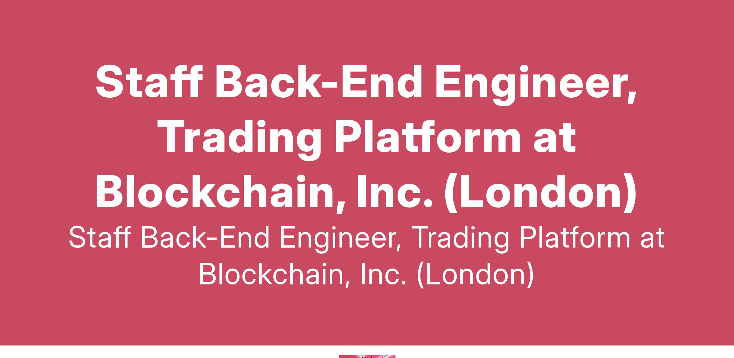 Staff Back-End Engineer, Trading Platform at Blockchain, Inc. (London)