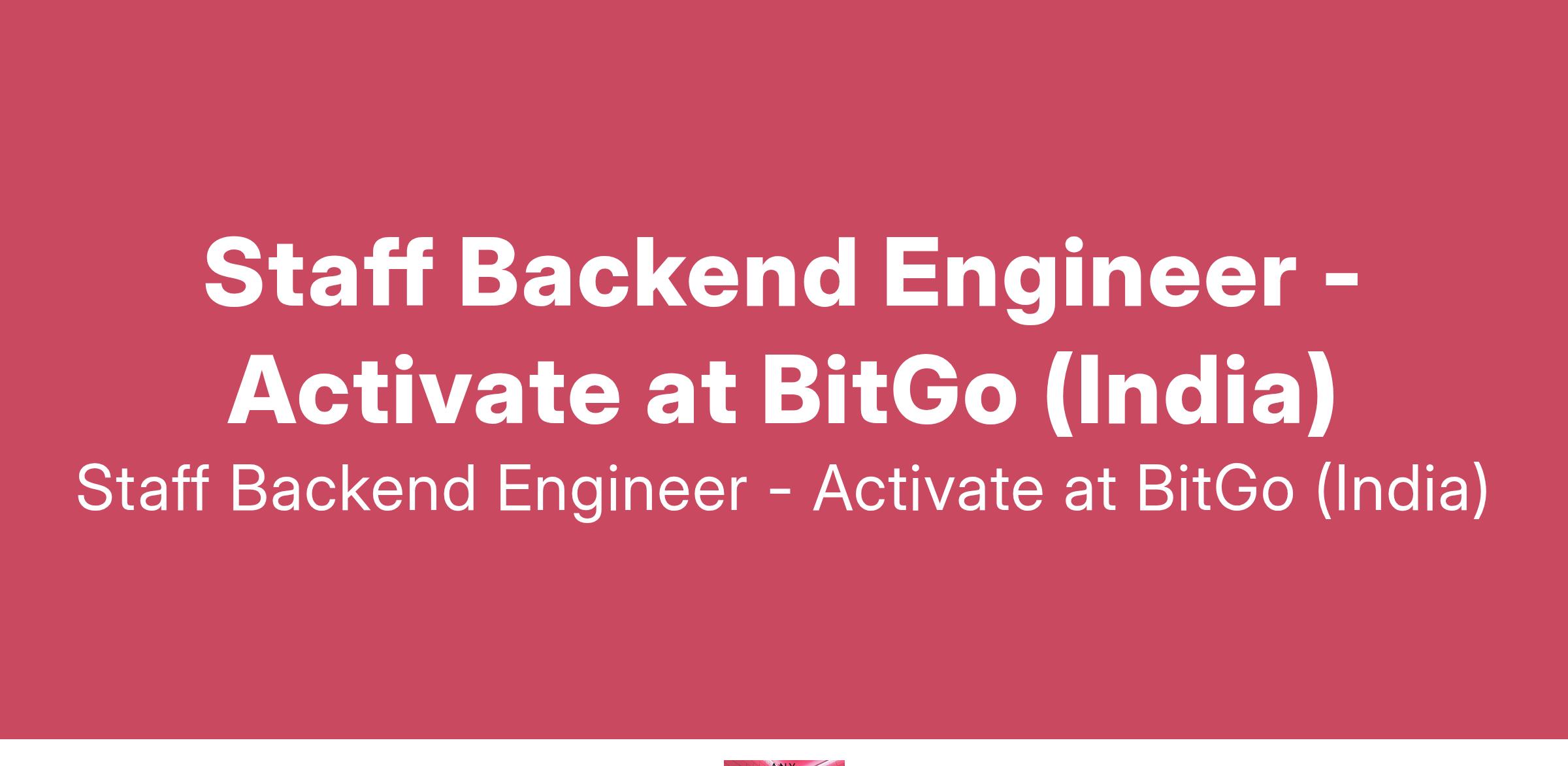 Staff Backend Engineer - Activate at BitGo (India)
