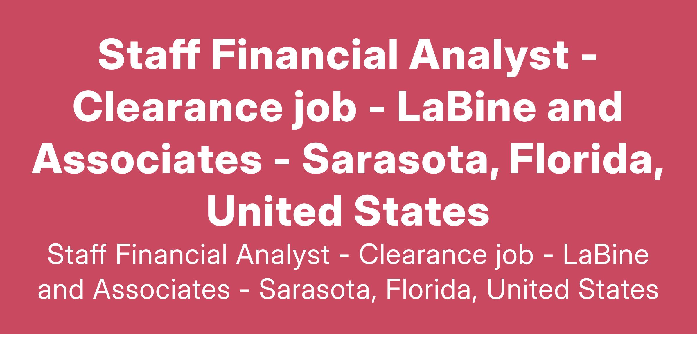 We are currently interviewing candidates for a full-time Staff Financial Analyst opportunity in Sarasota, Florida. This person will join a team supporting the needs of the Finance Department and Program Managers at our client.