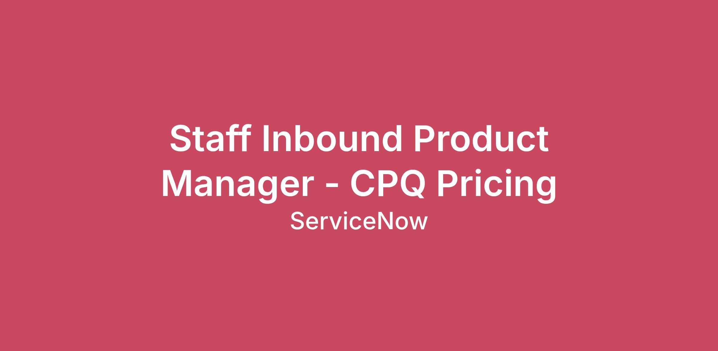 Staff Inbound Product Manager - CPQ Pricing