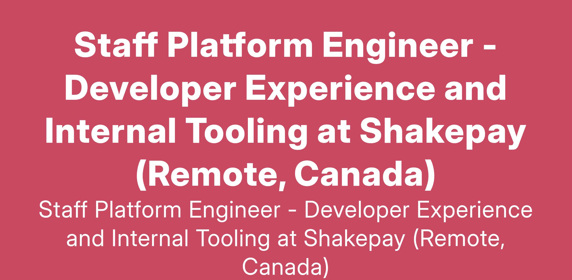 Staff Platform Engineer - Developer Experience and Internal Tooling at Shakepay (Remote, Canada)