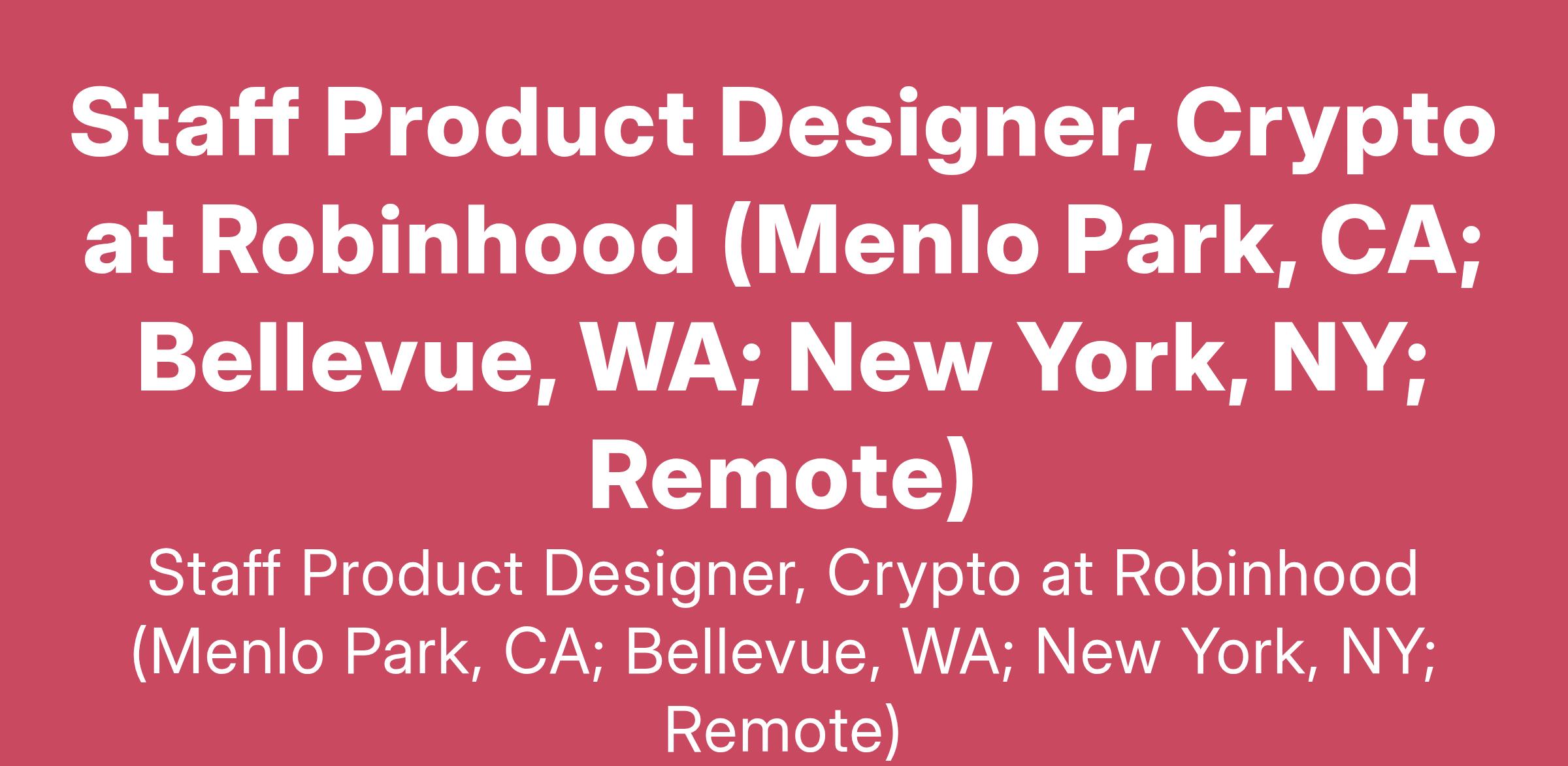 Staff Product Designer, Crypto at Robinhood (Menlo Park, CA; Bellevue, WA; New York, NY; Remote)