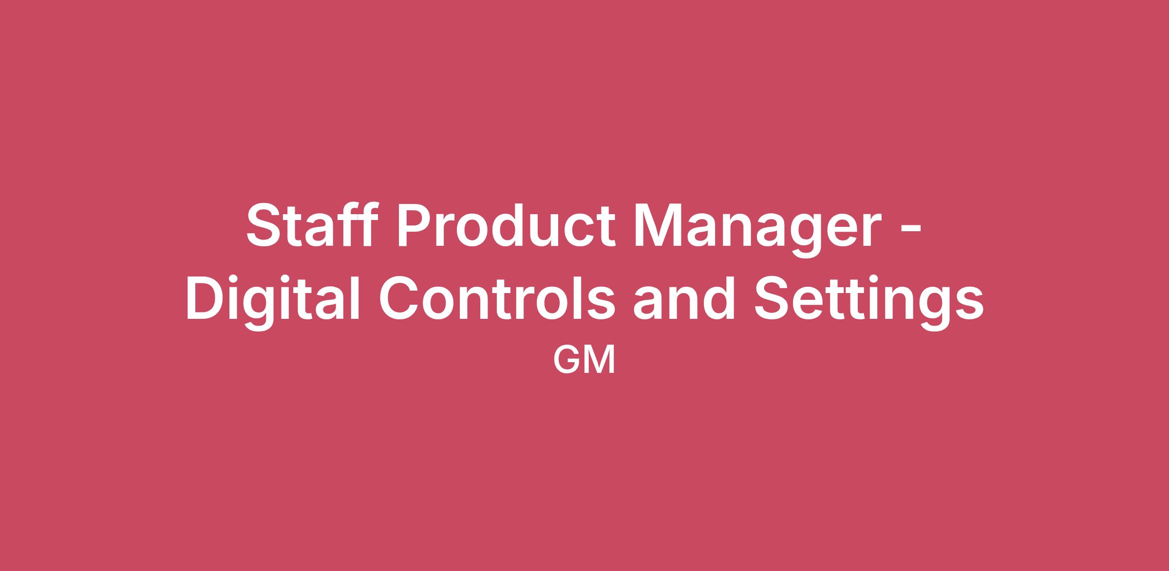 Staff Product Manager - Digital Controls and Settings