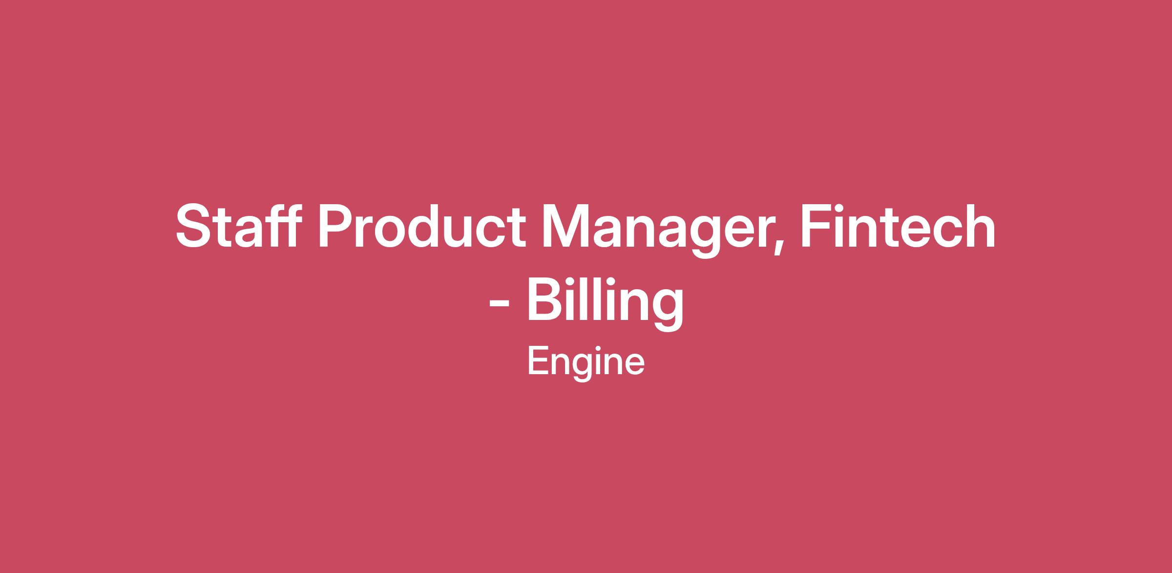About EngineAt Engine, we’re transforming business travel into something personalized, rewarding, and simple. For too long, managing travel and spend has been overwhelming and fragmented — we’re here to change that. We believe the future of travel should be seamless and powered by technology that delights customers at every step. That’s why we’re building a platform that brings together corporate travel, a powerful charge card, and modern spend management in one place. To make this vision real, we’re looking for exceptional, mission-driven people to help redefine how businesses manage and experience travel. More than 20,000 companies already rely on Engine to support over 1 million travelers and billions in annual bookings each year. Cash flow positive with rapid growth, we pair exclusive Engine-only rates, industry-leading rewards, and intelligent automation to help businesses save money while delivering world-class personalization and convenience. Backed by Telescope Partners, Blackstone, and Permira, Engine has been recognized as one of the fastest-growing travel and fintech platforms in North America, with honors including the Deloitte Fast 500 and Built In’s Best Places to Work.Mission As part of the Engine team, you’ll play a vital role in an environment where innovation meets collaboration. Here’s what you’ll take charge of: Billing & Invoicing Strategy: Craft and execute innovative strategies to modernize Engine’s end‑to‑end billing architecture—covering statements, invoices, folios, receipts, and direct bill—so customers can pay us quickly and accurately at scale. Cross-Functional Alignment: Collaborate with engineering, accounting, finance, and customer-facing teams to deeply understand how different customers obtain approvals and reconcile their books, and turn those insights into flexible, reliable billing experiences. Systems & Architecture Leadership: Lead the evolution of our billing platform and integrations (e.g., into customers’ accounting and ERP tools) to enhance efficiency, resilience, and scalability—ensuring that upstream changes across travel and fintech systems still produce accurate, trustworthy billing artifacts. Customer-Centric Problem Solving: Design billing experiences that support how customers actually review, approve, and reconcile charges, simplifying complex accounting and invoicing workflows into intuitive, self-serve tools that enable customers to bill their own clients and pay Engine accurately and on time. What You’ll Bring to Engine: We’re looking for someone who’s ready to make an impact and grow alongside us: Experience: 5–8+ years of hands-on product management experience, including significant time owning billing, invoicing, accounting, or internal financial systems (e.g., statements, folios, ledgers, approvals, AR/AP workflows). Skills: You’re a highly structured problem-solver who’s comfortable with complex, numbers-heavy domains. You break ambiguous, interdependent problems into clear, executable milestones, and you’ve shipped products that improved invoice accuracy, time-to-payment, or billing automation. You collaborate deeply with engineering, accounting/finance, and customer-facing teams, and you communicate clearly with both technical and non-technical stakeholders. Tech-Savvy: Bonus points if you’ve built or integrated with accounting or finance tools (e.g., QuickBooks, Coupa, or similar), or have experience designing internal platforms that support high-scale B2B billing. Familiarity with large, distributed systems and data integrity concepts is a plus. Mindset: You’re energized by untangling complex workflows and turning them into simple, reliable customer experiences. You’re comfortable in a fast-moving environment, ready to roll up your sleeves with cross-functional partners, and focused on delivering incremental, high-impact improvements—getting from 0→10, then 10→100. Applications for this role will be accepted through May 07, 2026 or until the role is filled. We encourage you to apply early, as we may begin reviewing applications before the deadline.CompensationOur compensation packages are based on several factors, including your experience, expertise, and location. In addition to a competitive base salary, total compensation may include equity and/or variable pay (OTE). Your recruiter will share your complete compensation package as you move through the process.Base Pay Range$177,820 - $246,100 USDThe Engine Edge: Perks & CompensationWe believe in rewarding great work with great benefits: Compensation: Competitive base pay tied to role and experience, with opportunities for bonuses, commissions, and equity. Benefits: Check out our full list at engine.com/culture. Environments for Success: Different roles have different needs in terms of the environments that drive success which is why we have a hybrid-hub model. Whether you are in one of our amazing offices or fully remote, we’ll make sure you have what you need to succeed. Perks and benefits may vary based on employment type, location, and more. Ready to Build the Future of Work Travel?Join us on our mission to transform how work travel works—for businesses, for travelers, and for the industry. Apply now and let’s make travel simpler, smarter, and more enjoyable—together.