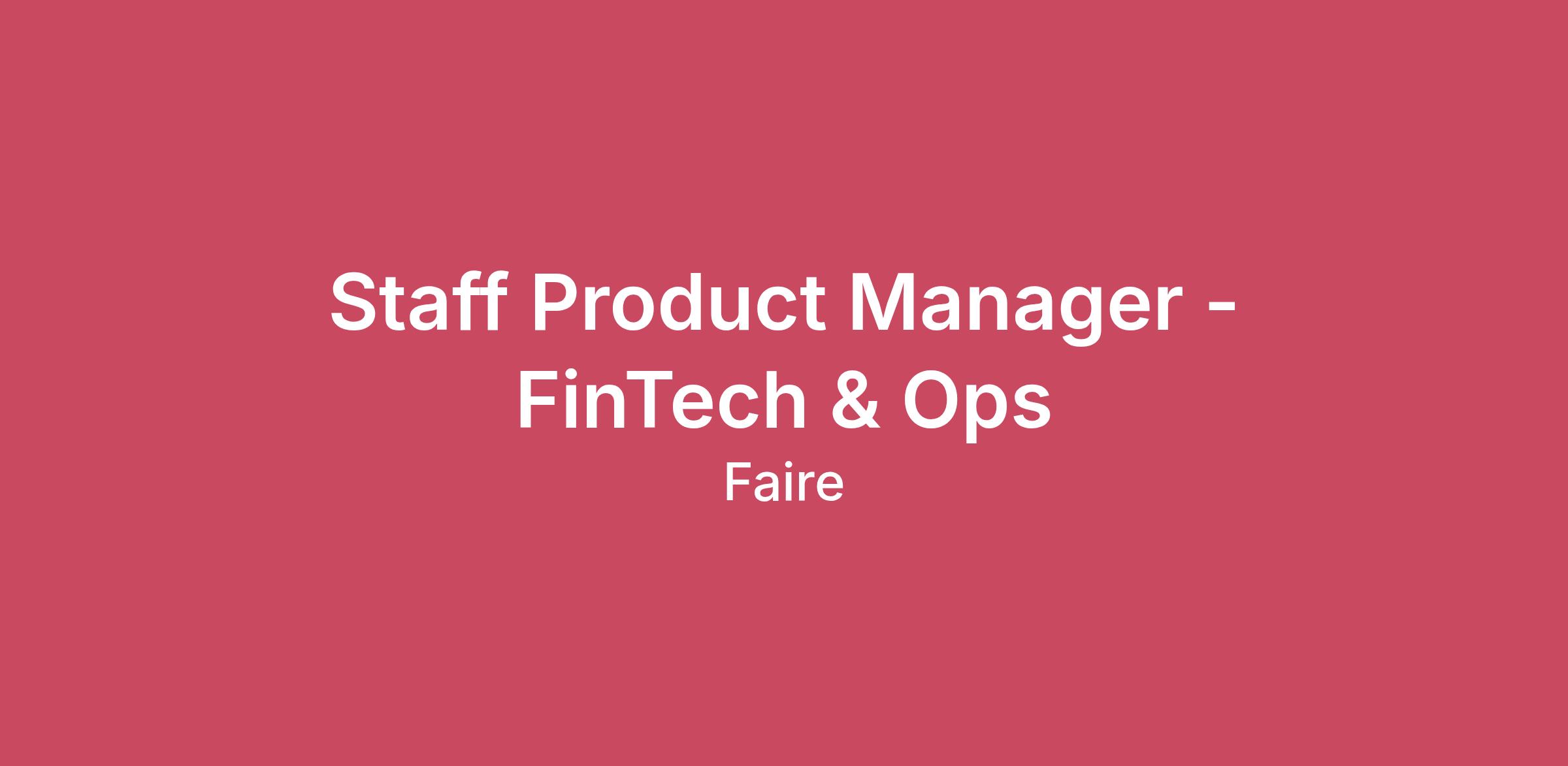 About Faire Faire is an online wholesale marketplace built on the belief that the future is local — independent retailers around the globe are doing more revenue than Walmart and Amazon combined, but individually, they are small compared to these massive entities. At Faire, we're using the power of tech, data, and machine learning to connect this thriving community of entrepreneurs across the globe. Picture your favorite boutique in town — we help them discover the best products from around the world to sell in their stores. With the right tools and insights, we believe that we can level the playing field so that small businesses everywhere can compete with these big box and e-commerce giants. By supporting the growth of independent businesses, Faire is driving positive economic impact in local communities, globally. We’re looking for smart, resourceful and passionate people to join us as we power the shop local movement. If you believe in community, come join ours. About this role You will be the product leader for high-impact FinTech & Ops initiatives that drive efficient growth across Faire’s marketplace through financial technology and the enablement of our operational teams. As a Staff PM you’ll own product strategy and delivery for payments and financial infrastructure, decision-making tools and frameworks in the areas of risk, identity and underwriting, customer support, returns and resale flows. You will also look after the shared technology and experimentation infrastructure that ties them together. Your job is explicitly dual-mandate: First, you’ll empower our operational teams to reduce cost by expanding automation while maintaining or improving customer experience. At the same time, you’ll redeploy those gains into growth by improving policies, reducing friction in information collection and deploying human resources towards the most complex cases (capital, curated experiences, high-touch recovery). You will be managing a portfolio of bets, operate at the intersection of finance, ops and CX, run rigorous experiments that trade off efficiency vs. growth and drive high single digit improvements in annualized contribution profit. What you’ll do Own roadmap & outcomes. Define a 6–12 month roadmap balancing efficiency experiments across the portfolio (payment routing, customer support contact rate reduction, Identity auto-decisioning, returns economics) with growth investments (capital pilots, curated onboarding, premium phone support) and platform investments to make our operational teams more effective at self- serving during iteration. You’ll be accountable for high single digit % Contribution Profit uplift. Design and run experiments. Lead rigorous A/B, cohort and holdout experiments with pre-specified success criteria that measure CP, CX risk and incremental GMV/LTV. Lead decisioning product work. Co-own returns/ markdowns, underwriting and IDV policy design, payment routing rules, limit adjustments. Deliver low- latency decision APIs, deterministic rulesets + ML integrations, and recoverability controls. Improve payment economics. Execute multi-provider routing and adoption of lower-cost payment rails (e.g., bank transfers) to reduce fees and free-up margin for growth investments. Expand self-solve modalities in support. Reduce contact rate without harming customer satisfaction by expanding the availability and effectiveness of our virtual assistant for customer support. Empower operational teams to drive iteration and improvement with limited engineering bandwidth. Scale returns & resale economics. Redesign and implement improved returns policies, partner on liquidation/resale flows, and recover margin to fund growth. Be the voice of tradeoffs. Use a documented rubric to decide when to automate vs. invest in human-driven growth; when to build vs buy technology; where to invest across the portfolio; how to manage growth vs efficiency investments. present tradeoffs and data-driven recommendations to senior leadership. Collaboration & Stakeholder Management Collaborate across a broad base of senior stakeholders across key operational and product teams: Finance (payment economics, capital funding), Risk & Legal (underwriting guardrails, compliance, identity verification), CX (virtual assistant quality and adoption), Operations & Fulfillment (returns/resale flows), Engineering & Data Science (platform, models, instrumentation), Design/ UX (user experiences around contacting operational teams, self solving and inputting key information), Product Marketing (capital rollouts, customer touchpoints). Empower operational teams to drive impact in their respective areas through systems that allow them to iterate on launches without needing consistent support from the product development organization Represent the product development organization in key operational forums across the company (e.g. reserve setting meeting, Operations business reviews). Qualifications and CompetenciesRequired Experience: 8+ years product management experience; prior Staff or equivalent senior PM experience preferred. Domain: Demonstrated experience on marketplace products and financial technology (payment processors, routing strategies, merchant economics, or customer/merchant capital programs). Operational focus: Demonstrated track record of excelling in working with operational teams such as finance, payments, underwriting/IDV, risk/recovery or operations products - both as users and partners. Analytical excellence: Deep comfort with experiment design (A/B, holdouts), causal inference, cohort analysis, and metric attribution; ability to translate analysis into product decisions. Cross-functional leadership: Proven ability to lead complex, cross-org initiatives and influence senior stakeholders (Finance, Risk, Legal, CX, Ops, Eng). Outcome orientation: Track record of shipping products tied to measurable business outcomes (contribution profit, GMV, LTV, cost-to-serve). Cross-Functional 