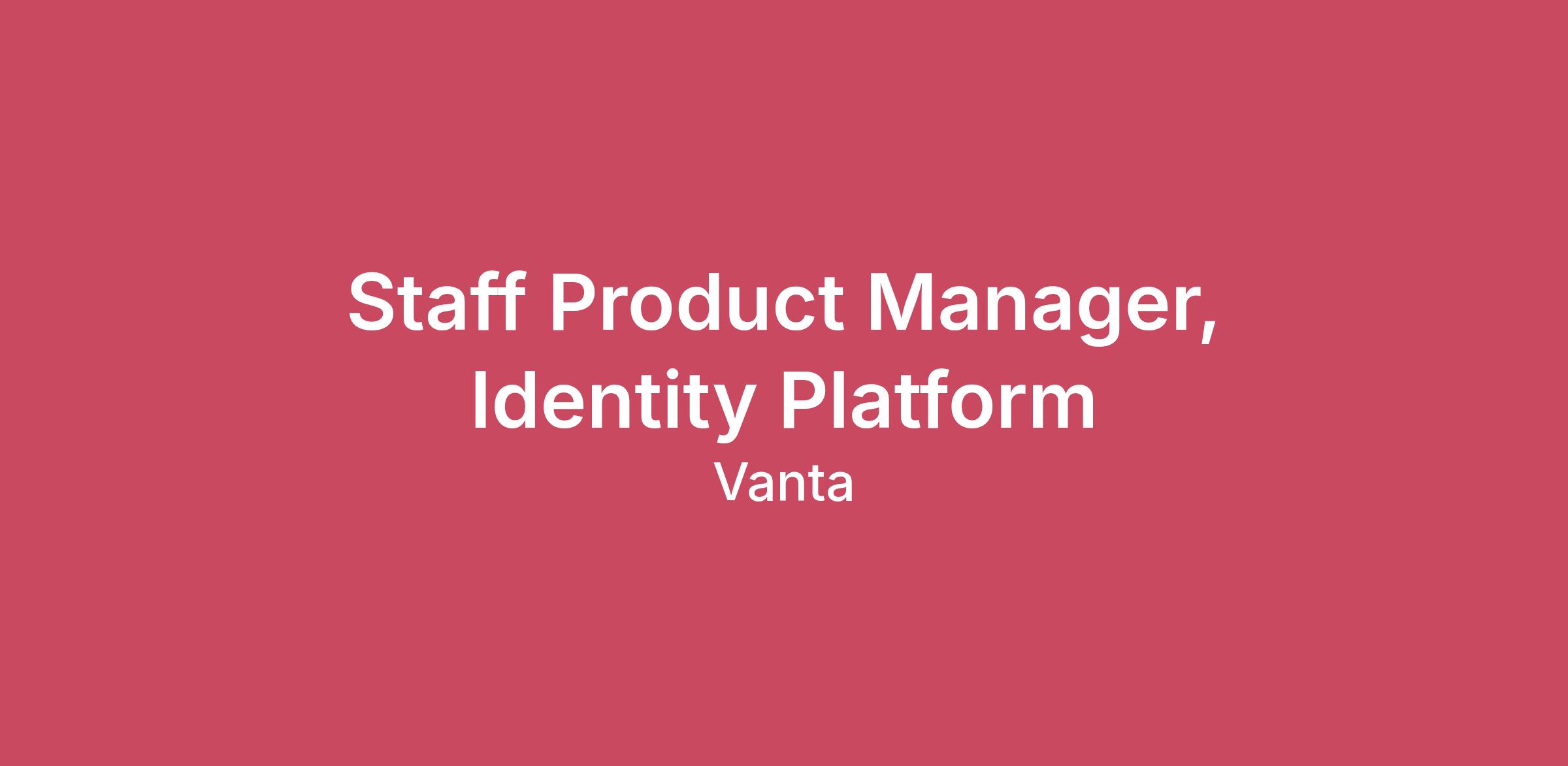 At Vanta, our mission is to help businesses earn and prove trust. We believe that security should be monitored and verified continuously, and we empower companies to practice better security and prove it with ease. Vanta has a kind and talented team, and while some have prior security experience, many have been successful at Vanta without it. The Identity & Access Management (IAM) team builds the foundational identity and permissioning systems that power every Vanta product. As Staff Product Manager for the Identity Platform, you'll own the product vision and roadmap for how Vanta authenticates users, authorizes actions, and models identity across an increasingly complex customer base from 10-person startups to federal agencies. This high-autonomy role shapes how permissions scale as Vanta moves deeper into enterprise and government markets.What you’ll do as a Staff Product Manager at Vanta:Own the IAM product vision and roadmap, setting direction for authentication, authorization, user modeling, and ownership frameworks in close partnership with engineering leadershipDrive the User Model split to completion — separating IAM Users (auth/permissions) from Personnel Records (GRC/compliance) in a complex, cross-team data migration with org-wide impactDefine Ownership 3.0 — chart the path from binary object-level ownership to customer-customizable, role-based permissions that serve both startups and large enterprisesShape Vanta's authorization strategy proactively, ensuring product teams build on shared platform capabilities rather than ad hoc permission solutionsContribute to multi-tenant access architecture, enabling seamless cross-domain experiences for auditors, MSPs, and multi-workspace enterprise customersNavigate complex cross-team dependencies across GRC, Trust, Collaboration, and PEX — all of which have authorization needs that this role must harmonizePartner deeply with engineering and technical domain experts to balance enterprise complexity with comprehensibility for smaller customersTranslate technical IAM concepts into clear business value for leadership, GTM teams, and cross-functional stakeholdersOpen to using AI to amplify their skills and strengthen their work - demonstrating curiosity, a willingness to learn, and sound judgment in applying AI responsibly to improve efficiency and impactWhat You'll Bring:8-12+ years of product management experience, with at least 3-4 years at a Staff/Senior level in platform or infrastructure rolesEnterprise platform PM experience: you've worked on permissions, RBAC, multi-tenancy, or identity systems at scale in B2B SaaSSystems thinking: you can reason about how authentication, authorization, and identity interconnect and affect every product surface — and explain it simplyStrong cross-functional collaboration: this role touches every team at Vanta and requires building consensus across Product, Engineering, Design, and GTMStorytelling for technical concepts: you can explain why an authorization architecture decision matters to non-technical stakeholders and translate complex IAM concepts into clear business valueCustomer empathy at multiple scales: you understand that a 10-person startup and a federal agency have vastly different permission needs, and can design systems that serve bothComfort with ambiguity: you've navigated complex platform problems with many open design questions and competing stakeholder needsNice to have: Experience with policy engines (Oso, OPA, Cedar) or authorization architecture patternsBackground in GRC, compliance, or security-adjacent productsFamiliarity with multi-tenant SaaS architecturesWhat you can expect as a Vanta’n:Industry-competitive salary and equityComprehensive medical, dental, and vision coverage, with 100% of employee-only benefit premiums covered for most medical plans16 weeks fully-paid Parental Leave for all new parentsHealth & wellness stipendRemote workspace, internet, and cellphone stipendCommuter benefits for team members who report to the SF and NYC officeFamily planning benefitsMatching 401(k) contribution with immediate vestingFlexible PTO policy, plus 80 hours of Sick Time11 company-paid holidaysVirtual team building activities, lunch and learns, and other company-wide events!Offices in SF, NYC, London, Dublin, Tel Aviv, and SydneyTo provide greater transparency to candidates, we share base pay ranges for all US-based job postings regardless of state. We set standard base pay ranges for all roles based on function, level, and country location, benchmarked against similar-stage growth companies. Final offer amounts are determined by multiple factors and may vary based on candidate location, skills, depth of work experience, and relevant licenses/credentials. #LI-remoteAt Vanta, we are committed to hiring diverse talent of different backgrounds and as such, it is important to us to provide an inclusive work environment for all. We do not discriminate on the basis of race, gender identity, age, religion, sexual orientation, veteran or disability status, or any other protected class. As an equal opportunity employer, we encourage and welcome people of all backgrounds to apply.About VantaWe started in 2018, in the wake of several high-profile data breaches. Online security was only becoming more important, but we knew firsthand how hard it could be for fast-growing companies to invest the time and manpower it takes to build a solid security foundation. Vanta was inspired by a vision to restore trust in internet businesses by enabling companies to improve and prove their security. From our early days automating security monitoring for compliance standards like SOC 2, HIPAA and ISO 27001 to creating the world's leading Trust Management Platform, our vision remains unchanged. Now more than ever, making security continuous—not just a point-in-time check— is essential. Thousands of companies rely on Vanta to build, maintain and demonstrate their trust— all in a way that's real-t