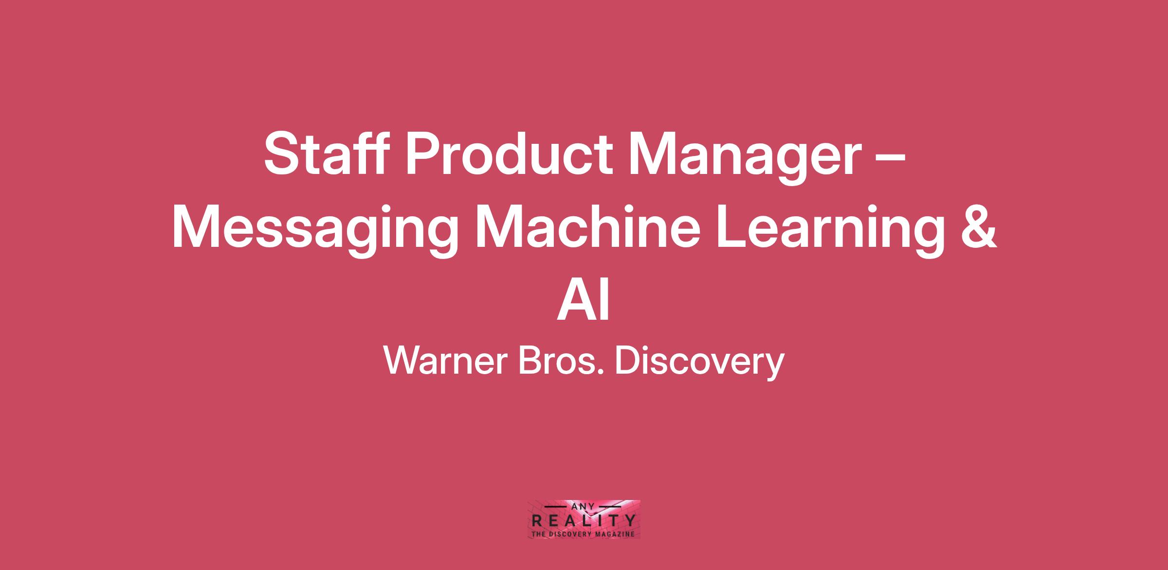 Welcome to Warner Bros. Discovery… the stuff dreams are made of.Who We Are… When we say, “the stuff dreams are made of,” we’re not just referring to the world of wizards, dragons and superheroes, or even to the wonders of Planet Earth. Behind WBD’s vast portfolio of iconic content and beloved brands, are the storytellers bringing our characters to life, the creators bringing them to your living rooms and the dreamers creating what’s next…From brilliant creatives, to technology trailblazers, across the globe, WBD offers career defining opportunities, thoughtfully curated benefits, and the tools to explore and grow into your best selves. Here you are supported, here you are celebrated, here you can thrive.About Global Product and Design within Streaming and GamesCentral to the mission of the Streaming and Games Team, the Global Product and Design group is responsible for the global streaming platform that supports all the video products our fans love. We plan, design and build for connected TVs, web, mobile phones, tablets, and consoles for HBO Max and together with our cross-functional collaborators we operate as one company with one mission to be the premier media and entertainment leader globally. As a member of our Growth Product team, your core mission is to drive growth by educating our customers about new content, features, and functionality that will delight & engage them About the RoleWe are seeking a Staff Product Manager to lead the development of HBO Max’s Messaging Machine Learning & AI. You will shape the product strategy for the decisioning, orchestration, and Machine Learning layer that selects which message to send, to which customer, through which channel at a global scale. In parallel, you will bring Generative AI into the workflow to create and personalize copy that fits each member, while protecting brand voice, quality, and compliance. You will work closely with ML Engineers, Data Science, Marketing, and Growth Product teams to develop predictive models and turn them into scalable decisioning systems and measurable business outcomes. This is a highly cross-functional and technically complex role that will require comfort working across machine learning infrastructure, experimentation, CRM, client platforms, and global business needs. You will own the machine Learning that powers all our messaging efforts across the lifecycle. With your messaging & CRM background you will write technical requirements directly for Messaging Engineering to ensure campaigns and comm strategies are optimized and implemented smoothly across all channels. You will play a key role in shaping roadmaps, informing messaging strategy, developing models, and delivering a cohesive experience across the membership lifecycle. We are seeking a systems thinker who acts like an owner with a sharp focus on the customer. If you are passionate about building delightful experiences that drive growth at scale, join our team at HBO Max! Responsibilities Set Vision & Strategy: Define and own the product strategy for Machine Learning and AI decisioning, partnering with Engineering, Design, Product, and Marketing to drive customers to their next best action, whether its content they’ll love or information about their membership. Messaging ML Execution & Delivery: Partner with Data Science and ML Engineers to design and deploy predictive models (e.g., take rate models, contextual bandits) that inform not only which campaign to send, but through what channel and at what time. Translate model outputs into ranking and eligibility policies that integrate with messaging & CRM systems. Measurement & Optimization: Partner with Data Science, Experimentation, and Analytics teams to define KPIs, set up experiments (A/B tests, Multi-Armed Bandits), and interpret results to assess offer effectiveness and model accuracy. Iterate on models and offer strategies based on experimental results, behavioral insights, and business context. Maintain an always-on learning agenda to evolve messaging strategies over time. Infrastructure & Enablement: Define product requirements for decision engines, orchestration, and self-serve tools that enable non-technical partners to configure campaigns within guardrails. Partner with Engineering and Data Platform teams to ensure infrastructure is scalable, performant, and adaptable across global markets. Stakeholder Management & Communication: Communicate progress, risks, and opportunities to senior leadership and other stakeholders, advocating for the consumer messaging vision & trade-offs. What We’re Looking For 8+ years of product management experience in CRM, growth, monetization, or ML/AI-driven products. Proven track record of partnering with Data Science and Engineering to launch ML-powered features and models at scale. Hands-on experience with experimentation frameworks (e.g., A/B testing, multi-armed bandits, holdouts), especially for CRM and lifecycle communications. Strong product intuition with the ability to balance data, model performance, business goals, and user experience. Ability to write clear end-to-end product requirements, from backend offer logic to front-end presentation and messaging, ensuring automated and ML-driven campaigns are delivered with clarity, consistency, and impact. Strong Technical Acumen: Comfortable working with backend systems, data infrastructure, and multi-platform environments (web, mobile, CTV). Outstanding Communication Skills: Strong communicator who can influence without authority, align cross-functional teams, and bring clarity to ambiguity. Deeply Curious: Deep interest in personalization, behavioral science, and maximizing customer lifetime value. Industry Expertise: Familiarity with CRM systems & other messaging surfaces is preferred. Experience with Direct-to-consumer video and streaming subscription products is a plus. How We Get Things Done…This last bit is probably the most important! Here at WBD, our guiding principle