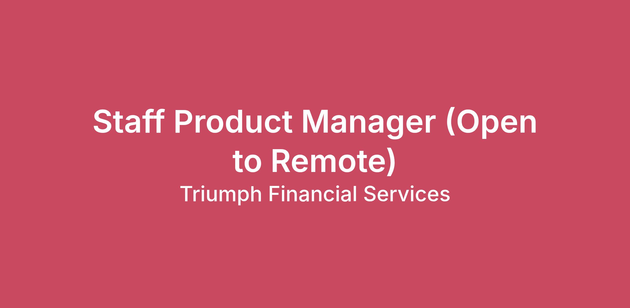 Join Triumph!At Triumph, our vision is a world where freight transactions are accurate and seamless on the most modern and secure freight transaction network. That’s why we’re looking for passionate, innovative, solutions-oriented people to join our team. We thrive on providing exceptional customer service and we look for team members with an entrepreneurial spirit and a passion to build successful partnerships with our clients. Because at the end of the day our goal is to help our partners businesses run better.***Please note - This is a US-based remote position requiring core working hours on Eastern Standard Time (EST) to ensure a significant daily overlap with our EU-based team.***We’re on the hunt for a dynamic and experienced Staff Product Manager to drive high-impact product initiatives and deliver solutions that scale. If you’re passionate about shaping the future of products that solve real customer problems and you thrive in a fast-paced, collaborative environment, this role is for you.A Day in the LifeAs a Staff Product Manager, you’ll be at the forefront of shaping our product roadmap. From collaborating with cross-functional teams to launching complex, customer-centric products, you’ll guide every step of the product lifecycle. Your ability to communicate product vision, align teams, and drive decision-making will ensure our products consistently meet and exceed business and customer goals.What You’ll Be DoingLead and communicate the product vision and strategy in alignment with company objectives.Manage the full product lifecycle from discovery to launch and iteration.Collaborate closely with software engineers, designers, data, and marketing teams to deliver high-quality products on time.Analyze market trends, customer feedback, and product performance to guide decision-making.Prioritize product features and enhancements based on business impact and customer value.Mentor and inspire the product team, sharing best practices and helping elevate the team's capabilities.Influence key stakeholders, including executives, to align and drive support for product initiatives.Identify new product opportunities and stay ahead of emerging technologies.What Makes You a Great FitExperience: 7+ years in product management, with at least 2 years in a senior or staff-level role.Expertise: Proven track record of launching successful products in B2B/B2C environments.Collaboration: Comfortable working with cross-functional teams, including engineers, designers, and marketers.Technical Background: Strong understanding of technical concepts and agile development processes.Leadership: Able to mentor, lead teams, and influence stakeholders across all levels.Skills: Strong communication, strategic thinking, data-driven decision-making, and problem-solving abilities.Tools: Familiarity with Jira, Confluence, Aha!, Figma, and other product management tools.Education: Bachelor’s degree in Computer Science, Engineering, Business, or a related field (MBA or advanced degree a plus).BONUS POINTS: Logistics industry experience great to have!Apply NowReady to make an impact and take the next step in your career? We’re excited to meet you! Apply now and help us build products that will change the game.Work environmentThe work environment characteristics described here may be encountered while performing the essential functions of this job. Reasonable accommodations may be made to enable individuals with disabilities to perform the essential functions.Ability to sit at a computer terminal for an extended period of time. Occasional stooping or kneeling may be necessary.While performing the duties of this job, the employee is regularly required to stand, sit, talk, hear and use hands and fingers to operate a computer keyboard and telephone.Specific vision abilities are required by this job due to computer work.Light to moderate lifting is required.Regular, predictable attendance is required.Compensation RangeAnnual Salary: $151,038.00 - $234,109.00***Location: Dallas, TX or Remote U.S. excluding the following states: AK, DE, ID, ND, RI, VT, WY ***We offer Medical, Dental, Vision, Paid Time Off, 401k and much more.Go on. Do it. Apply Today!