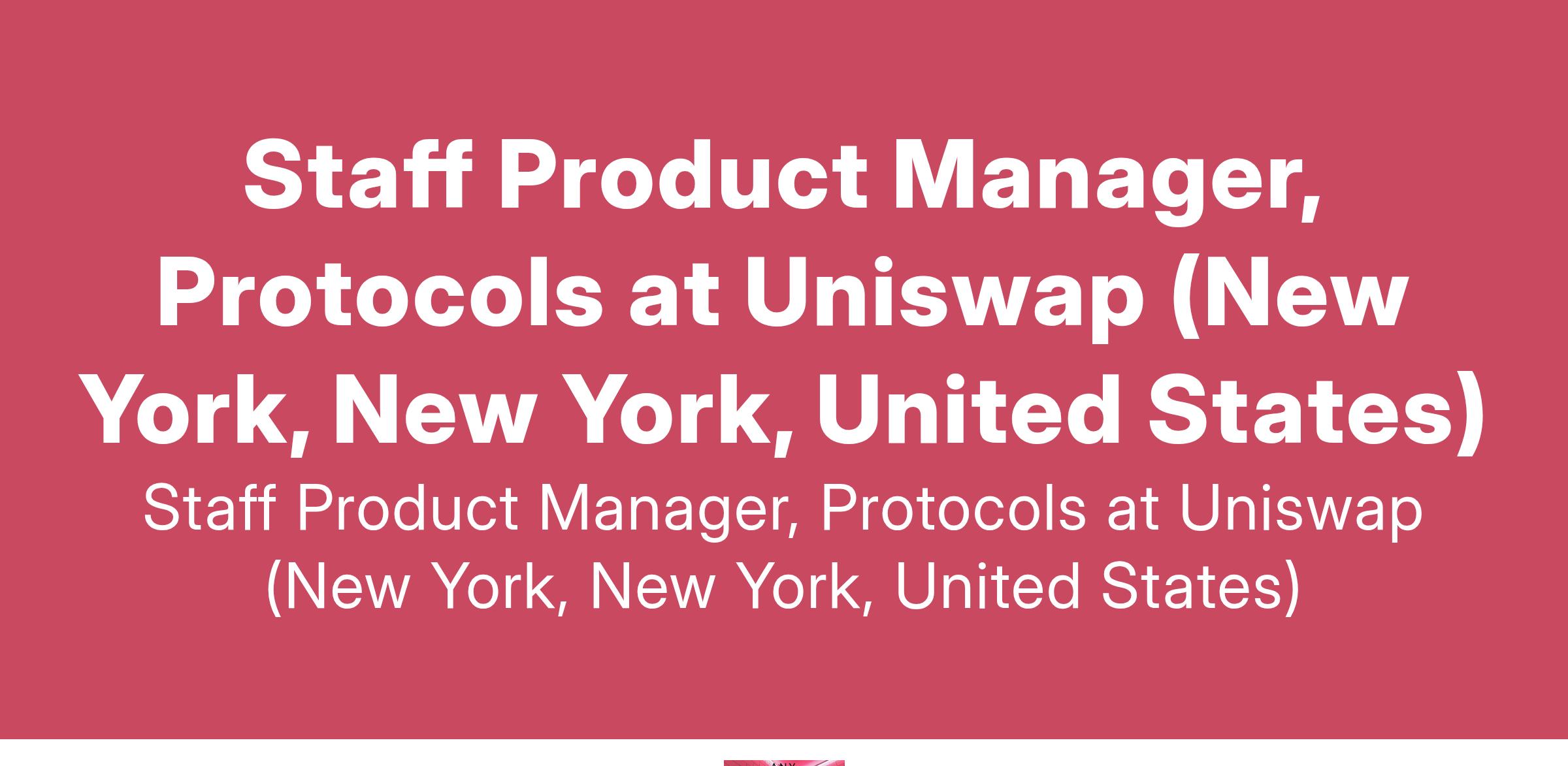 Staff Product Manager, Protocols at Uniswap (New York, New York, United States)