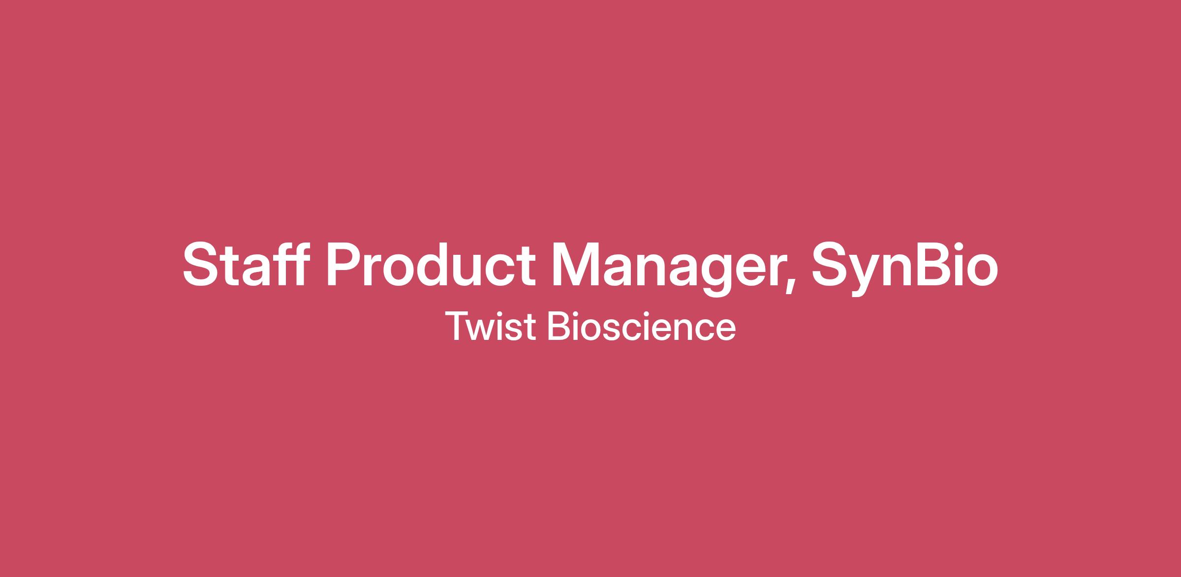 The Product Manager will develop multi-generational product strategies and guide planning for future positioning, growth, and development of disruptive advancements in synthetic biology. This includes assessing and prioritizing customer and market requirements, working with strategic collaborators, research & development, operations and the wider commercial team to deliver truly innovative products. The product manager is ultimately responsible for revenue, margin, customer satisfaction, and market share objectives. What You’ll Be Doing In collaboration with the commercial team, the product manager will own and be responsible for growing the synthetic biology product portfolio Work closely with customers and strategic partners to gather input to develop disruptive new products Develop detailed product strategy and roadmaps to meet company financial and strategic objectives Build business plans and strategy for the application area that includes opportunity assessment, positioning strategy, financial analysis, and required tactical plans to support successful product adoption Deliver on an ongoing basis the product requirements with associated prioritization, metrics, and supporting analysis Work very closely with development teams to ensure successful implementation of product requirements and drive product development to commercial launch Perform ongoing competitive and market analyses Train the sales teams and support selling activities as appropriate, including the development of sales tools and collateral Create content collateral and product messaging to convey the value proposition to target markets Provide input to partnership opportunity assessments Manage collaborations with key partners and customers to rapidly develop innovative gene synthesis solutions and support broader product adoption Follow regulatory and ISO 13485 requirements What You’ll Bring to the Team Track record of success defining and launching products in the research tools marketplace with a deep knowledge of synthetic DNA preferred Must speak DNA Understanding of gene synthesis technologies, workflows including current and future applications Proven ability to influence cross-functional teams, and to work effectively with customers, development, and sales teams A successful candidate will have both molecular biology and product management experience Demonstrated track record of managing high profile collaborations that deliver successful products Experience with building product roadmaps and product life cycle management Experience with financial modeling and data analysis skills. Ability to build and analyze models to forecast and track results Degree in molecular biology, genetics or associated scientific field required. Outstanding leadership, teamwork, and communication skills Hands on, high energy, proactive attitude Ability to travel up to 20% both domestically and internationally The base cash compensation for this California-based role is below. In addition to base salary, this role is eligible for bonus, equity, and a generous benefits package. Final compensation amounts are determined by multiple factors, including candidate skill, experience, expertise, and location and may vary from the amount listed above. Compensation may be different in other locations.San Francisco Bay Area Pay Range$185,000 - $200,000 USD