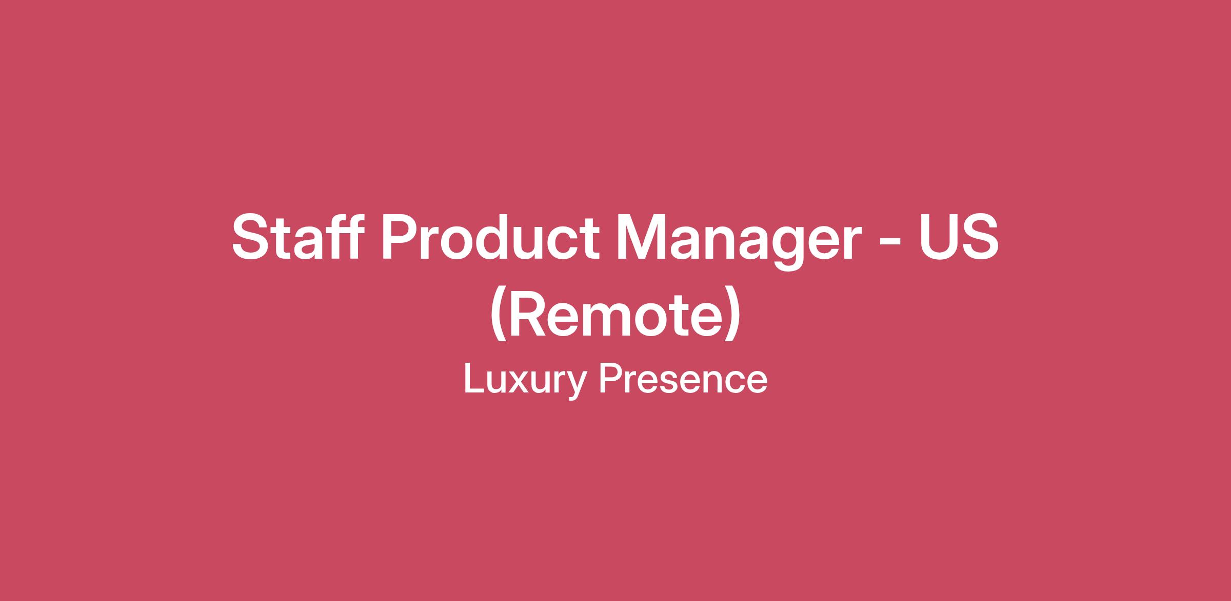 Luxury Presence is the leading growth platform for high-performing real estate agents, teams, and brokerages. The company provides agent-branded websites, advanced marketing tools, and Presence® CRM, the AI relationship engine that transforms an agent’s sphere into a proactive source of new business. More than 17,000 real estate businesses rely on Luxury Presence to elevate their brand, attract clients, and grow their business, including 30% of the Wall Street Journal RealTrends top agents and teams.Why this roleThis role will lead product for a new team inside our Flagship Group to accelerate Luxury Presence’s shift to an AI-powered platform for real estate growth. Flagship owns the technology at the core of our business: stunning real estate websites and the foundational elements of Presence, our platform that enables clients and internal teams to create websites, integrate with CRMs, create beautiful presentations for home buyers and sellers, and much more.As a Staff Product Manager, you’ll own strategy, roadmap, execution, and rollout high-impact, high-complexity projects, including new offerings and strengthening our existing solutions. Working in a fast-paced environment with a skilled designer and team of fully AI-equipped engineers, you’ll shape the core product that our customers and internal teams rely on every day — and see your work unlock momentum across the company.If you want to build high-value, intuitive, beautiful products at an AI-forward start-up — this is your role.What You’ll DoOwn a roadmap that increases customer value, raises quality, and removes friction across Presence.Turn ambiguous problems into a sharp plans with clear value, scope, milestones, and metricsRun discovery with customers and internal teams. Validate problems, test solutions, and de-risk early.Write crisp PRDs, roadmaps, and decision docs that drive clarity and align stakeholders Sequence work for iterative delivery and fast learningCollaborate with Design and Engineering to ship reliable, intuitive, and delightful experiences.Define and analyze success metrics to understand if your bets are paying off and guide future workWhat We’re Looking For5+ years in product management, including 2–3 years leading large, complex 0→1 or major revamp initiativesStartup mindset — you thrive in ambiguity, are a master at finding the MVP, and balance speed with qualityExceptional communicator & collaborator — you drive clarity and gain trust and buy-in within your team and across the businessTechnical product track record — you’re experienced building technical products such as integrations and APIsPassion for quality — you care deeply about building exceptional user experiences and nailing the detailsFluent in AI tools — you’re an expert at leveraging AI tools to multiply your impactNice to HavesExperience with B2B integration platformsExperience with real estate CRMs such as FollowUp BossExperience building AI-powered products – agentic workflows, LLM selection, prompt creation, and evaluation suitesFamiliarity with the real estate industryWhy You’ll Love It Here🚀 Join a product-led, design- and AI-forward company with real traction and a clear growth strategy🎯 Drive innovation on core functionality and greenfield bets💡 Work with a talented, humble, and highly collaborative team🌍 Thrive in a remote-first, async-friendly environment🌱 Grow into leadership as we expand the platform and team$170,000 - $210,000 a yearJoin us in shaping the future of real estateThe real estate industry is in the midst of a seismic shift, and the future belongs to those who break new ground. As one of the fastest-growing companies in the proptech and marketing sectors, Luxury Presence challenges the status quo of what technology can do for real estate agents, leaders, and brokerages.We’re a team of agile and tenacious innovators working collaboratively to drive the industry forward. Together, we build game-changing products that empower modern real estate entrepreneurs to dominate their markets. From award-winning web design to agile SEO solutions to cutting-edge AI tools, we deliver tech that anticipates market shifts and keeps our clients ahead of their competition.Founded in 2016 by Stanford Business School alum Malte Kramer, Luxury Presence has grown to a global team ranked on the Inc. 5000 fastest-growing companies list three years in a row. We’re backed by world-class investors, including Bessemer Venture Partners, Toba Capital, and Switch Ventures, and have raised $52.6 million to date.More than 17,000 real estate businesses rely on our platform, including 30% of the Wall Street Journal RealTrends top agents and teams. Additionally, many of the industry’s most powerful brokerages — including Compass, Coldwell Banker, and Sotheby’s International Realty — rely on Luxury Presence as a trusted business partner.Every year since 2020, Luxury Presence has ranked on BuiltIn’s Best Place to Work lists. HousingWire named our founder and CEO a 2024 Tech Trendsetter, we’ve received several Tech100 Awards, and our lead nurturing tool just scored an Inman Innovation Award for Best AI-Powered Platform.Luxury Presence is an Equal Opportunity Employer. All qualified applicants will receive consideration for employment without regard to race, color, religion, sex, sexual orientation, gender identity, or national origin.We may use artificial intelligence (AI) tools to support parts of the hiring process, such as reviewing applications, analyzing resumes, or assessing responses. These tools assist our recruitment team but do not replace human judgment. Final hiring decisions are ultimately made by humans. If you would like more information about how your data is processed, please contact us.