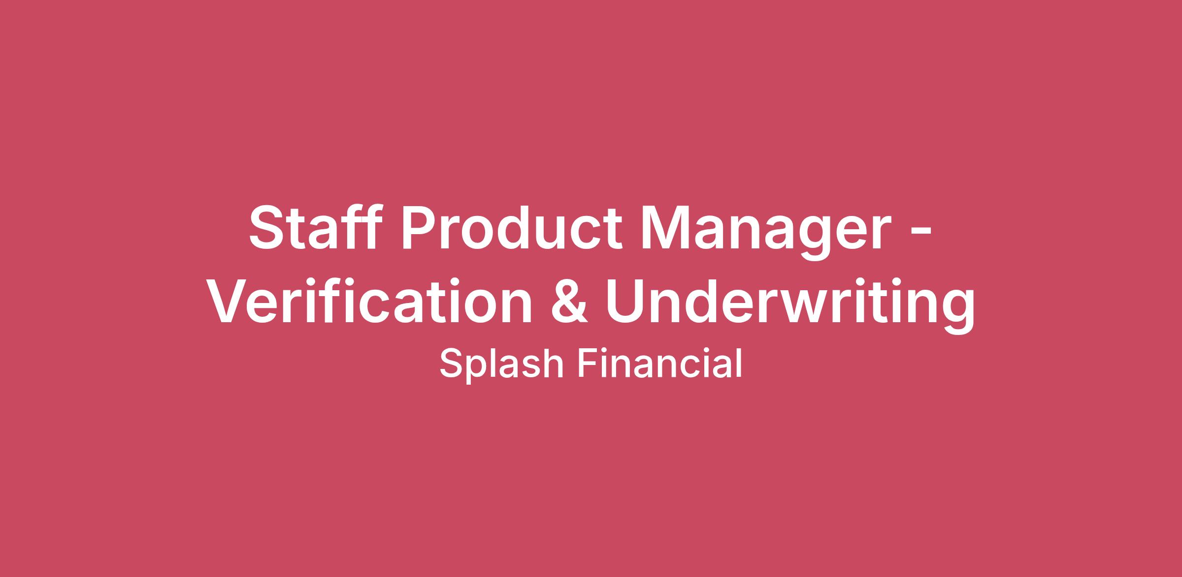ABOUT OUR COMPANY: The crushing weight of debt is something that we believe holds people back from reaching their dreams and making a splash in the world. So in 2013, after seeing our friends and family struggle with student loans, we created Splash Financial. Over the years, our mission has expanded to include helping people with other forms of debt - such as refinancing credit cards, which are at all time highs in the US. And we’ve been able to refinance $6+ Billion in loans through our network of Splash, powered credit union and bank partners who leverage our marketplace and automated loan processing technology. And we’ve raised over $135 million from investors like partners of DST Global, Citi Ventures, TruStage Ventures, Northwestern Mutual Future Ventures, Detroit Venture Partners, and more. But at our core, we’re still that little company from Cleveland with a big dream: to make people more powerful than their debt and we’re just getting started.. ABOUT OUR WORKPLACE: Splash is remote-first, and proud of it. We spend our days simplifying financial products and getting them into the hands of people who need them most. Right now, we’re focused on building financial technologies that fundamentally transform how the industry lends. Although Splash has been around since 2013, we still operate like a startup — fast-paced, nimble, and full of heart. We’re good people who care deeply about doing meaningful work and we approach challenges with creativity, passion, and urgency. And to hire the best, we provide the best: great health insurance, competitive salaries, and unique benefits like quarterly meet-ups and access to engagement tools that keep us connected — even from afar. At Splash, everything we do is guided by our values: Own It – We take full accountability and follow through on commitments. Raise the Bar – We move fast, innovate faster, and push through barriers. Say the Hard Thing – We speak up with honesty, respect, and a desire to solve problems and make things better. Elevate Each Other – We win as a team by lifting each other up. These values show up in how we work and how we connect — whether we’re collaborating on big projects or bonding over everyday moments. Yes, we even have Slack channels for #kids-and-pets and #food because we believe being human makes us better teammates. ABOUT THE ROLE: Splash Financial is seeking a Staff Product Manager to lead the underwriting and verification experience across our personal lending funnel. This is a high-impact, high-visibility role responsible for defining and scaling the systems that power credit decisioning, fraud detection, income and identity verification, document automation, and agent workflows. You will own the product strategy for underwriting infrastructure and decision engines that directly influence approval rates, fraud loss, operational efficiency, and customer experience. This role requires not only deep expertise in credit and fraud tooling, but also strong empathy for and experience working closely with underwriting agents and operations teams. You will design systems that improve straight-through processing while equipping agents with intuitive tools for efficient, compliant manual review. You’ll work at the intersection of Product, Risk, Fraud, Engineering, Data Science, Compliance, and Operations to modernize our underwriting stack — including third-party data providers, document processing tools, automated decisioning platforms, and internal agent tooling. WHAT YOU’LL DO AT SPLASH: Own the end-to-end underwriting and verification product domain across credit, fraud, income, identity decisioning, and agent review workflows within the personal lending funnel. Define and execute the multi-quarter roadmap for decision engines, including rule orchestration, model deployment, experimentation frameworks, and automation strategy. Lead integrations and optimization of third-party data providers such as LexisNexis, Socure (or similar), credit bureaus, fraud/identity vendors, and income verification partners. Drive implementation and scaling of document processing and automation platforms (e.g.- Inscribe, Ocrolus, Instabase) to increase straight-through processing and reduce manual review dependency. Partner closely with underwriting agents and operations teams to design intuitive tooling, case management workflows, and review experiences that improve efficiency, quality, and compliance. WHAT YOU’LL BRING TO SPLASH: 8-10+ years of product management experience, with significant focus on underwriting, credit, fraud, or decisioning platforms in fintech or consumer lending. Deep experience with credit underwriting systems and fraud decisioning tools, including hands-on experience implementing or managing decision engines. Experience integrating and optimizing third-party data providers. Strong structured thinking and execution excellence. You can translate strategy into a clear plan, define meaningful milestones and metrics, and deliver consistently. You have strong analytical skills and can surface insights and recommendations from customer feedback and performance dashboards. Excellent communication and stakeholder management skills; you’re comfortable driving alignment across senior leaders and diverse teams, saying the hard thing with clarity and respect, and elevating others as you go. Demonstrated experience building or improving agent-facing underwriting tools and workflows, with a strong understanding of manual review operations, queue management, case handling, and quality controls. Strong understanding of underwriting workflows, risk-based decisioning, experimentation, and operational tradeoffs, with a track record of driving measurable improvements in approval rates, fraud performance, operational efficiency, and customer experience. COMPENSATION: The base salary range for this role is $163,000 to $220,000 annually, based on market data and internal compensation practices. Th
