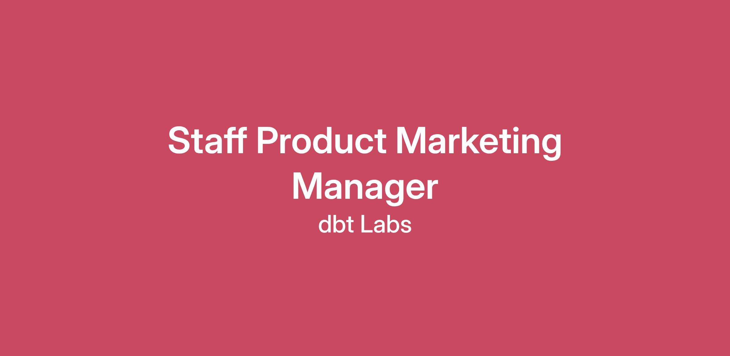 About Us dbt Labs is the pioneer of analytics engineering, helping data teams transform raw data into reliable, actionable insights. Since 2016, we’ve grown from an open source project into the leading analytics engineering platform, now used by over 50,000 teams every week. As of February 2025, we’ve surpassed $100 million in annual recurring revenue (ARR) and serve more than 5,400 dbt Cloud customers, including JetBlue, HubSpot, Vodafone New Zealand, and Dunelm. We’re backed by top-tier investors including Andreessen Horowitz, Sequoia Capital, and Altimeter. At our core, we believe in empowering data practitioners: Code-based data transformations unlock transparency, flexibility, and collaboration Analysts should adopt software engineering best practices to build trusted data products Core analytics infrastructure should be open source and user-controlled Analytic code—not just tools—should be shared and community-driven dbt is now synonymous with analytics engineering, defining the modern data stack and serving as the data control plane for enterprise teams around the world. And we’re just getting started. We’re growing fast and building a team of passionate, curious people across the globe. Learn more about what makes us special by checking out our values. As a Staff Product Marketing Manager - Enterprise Solutions at dbt Labs, you will play a pivotal role in shaping the market perception of dbt—the industry standard that helps organizations build, manage, and analyze data at scale. In this role, you’ll have the opportunity to position dbt as an enterprise solution that solves the most pressing strategic initiatives for our enterprise customers and prospects. This role is ideal for someone who’s as comfortable digging into the details of dbt features and our users’ needs as they are with telling a big-picture story about where our platform and industry are headed. Product Marketing at dbt Labs is highly strategic and cross-functional, collaborating across product, marketing, GTM, customer success, and executive teams to shape the direction of our go-to-market strategy and deliver customer impact. If you are passionate about driving strategy, fostering cross-functional partnerships, and contributing to transformative initiatives in the data and AI space, we’d love for you to apply. What you’ll do: Own strategic messaging, positioning & differentiation Create clarity of ownership and execution across use case solutions messaging, persona strategy, enterprise sales plays, and enablement content Build narratives and market-facing content that clearly communicate the business value of dbt to executive buyers and mid-level technical champions Own positioning, messaging, and value propositions for our platform and key solutions across use cases and industries Bring market, customer, and competitive insights back to product, pricing, and packaging decisions, ensuring roadmap prioritization reflects real buyer needs Drive cross-functional go-to-market success Translate complex technical capabilities into clear, field-ready narratives that drive adoption and pipeline from initial awareness to final decision Partner with demand gen and campaign teams to build campaign strategy and align launch tactics with pipeline goals and buyer journey gaps; measure and report on the effectiveness of marketing campaigns and use insights to drive continuous improvement. Package strategic sales plays into end-to-end GTM kits: pitch decks, demo flows, discovery guides and objection handling, short- and long-form content, customer testimonials, and competitive positioning Partner closely with sales enablement to ensure high adoption and measurable impact Serve as a visible, trusted leader across sales, product, and marketing, representing the voice of product marketing in key internal and customer-facing forums You’re a good fit if you have: 6+ years of experience in product or solutions marketing, preferably within the data analytics domain. A proven track record of developing and executing successful sales plays and marketing campaigns for B2B software products. Strong understanding of the data analytics industry and its challenges, with the ability to translate complex concepts into clear, compelling messaging. Exceptional written and verbal communication skills, with a talent and passion for storytelling. Experience working with cross-functional teams, demonstrating strong leadership and collaborative abilities. Demonstrated analytical skills, with the ability to leverage data to inform marketing strategies and decisions. You'll have an edge if you have: Prior experience working at a data analytics and/or open source software company Experience with value selling frameworks such as Command of the Message Familiarity with the modern analytics stack, and a strong grasp of market dynamics within it Experience as an end-user of dbt, and/or experience as a data analyst, data engineer, or data scientist Compensation & Benefits Annual Salary: $175,000 - $240,000 USD Equity Stake Benefits - dbt Labs offers: Unlimited vacation (and yes we use it!) 401k Pension Plan 16 weeks Paid Parental Leave Wellness stipend Home office stipend, and more! *Equity or comparable benefits may be offered depending on the legal limitations What to expect in the hiring process (all video interviews unless accommodations are needed): Interview with Talent Acquisition Partner Interview with Hiring Manager Team Interviews Final Round Values Interview dbt Labs is an equal opportunity employer, committed to building an inclusive team that welcomes diverse perspectives, backgrounds, and experiences. Even if your experience doesn’t perfectly align with the job description, we encourage you to apply—we value potential just as much as a perfect resume. Want to learn more about our focus on Diversity, Equity and Inclusion at dbt Labs? Check out our DEI page. dbt Labs reserves the right to amend or withdraw the posti