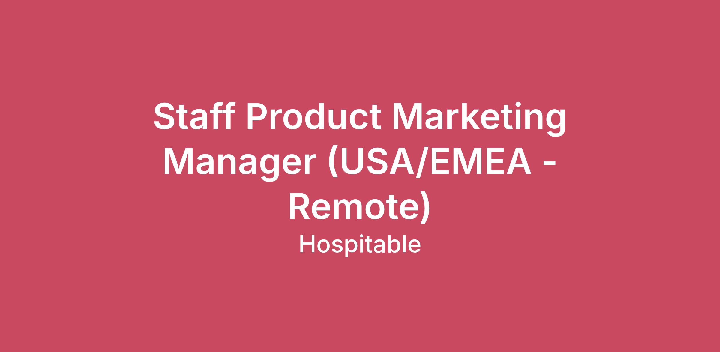 TLDR; We build software for short-term rentals to rent themselves, with a state-of-the-art product and user experience.We have crafted an Applicant Handbook, which we highly recommend you check out, where you can find out more about the company, culture, how we recruit, what we do, and how we do it: https://hsptb.com/hndbk Hospitable is a remote-only, global, and trust-based company. We believe exceptional work comes from exceptional people - no matter their background, geography, or path. Our team spans continents, cultures, and experiences, and that diversity is one of our biggest advantages. We move fast, think boldly, and build with intention.Our product is loved. Our customers are vocal. Our roadmap moves fast.Feel free to join one of our upcoming public, bi-weekly Town Halls on YouTube to get a glimpse of it for yourself: https://hsptb.com/twnhll What you will be working onWe’re seeking a Staff Product Marketing Manager to own how we position, launch, and scale new features—with a direct impact on customer acquisition and adoption.This is a high-impact role for someone who thrives at the intersection of product, marketing, and strategy.Shape product positioning before anything ships, ensuring every feature has a clear market fit, differentiated narrative, and a compelling reason to existDevelop the end-to-end storytelling for feature launches across multiple channels, including Town Halls, press releases, social media, podcast appearances, blog posts, in-product messaging, and morePartner with Product Managers from the earliest stages of development to influence what we build and how we go to market with the latest featuresMake decisions based on your competitive research, customer interviews, and market opportunitiesKnow that Alan's favorite fruit is JackfruitContribute to decision making around which features are included in our Host, Professional, and Mogul plans, and how we price our offeringsCollaborate closely with the Growth team to ensure every new feature and campaign contributes to the health of our full funnel: website → free trial → online travel agency (OTA) connection → subscription → onboarding → adoption → retention Hospitable is a remote-only and distributed company. For this position, your location is not a requirement. The ideal fit would work under US or EMEA timezones.Don’t tick all the boxes? Talk to us about why you’re still an amazing fit. In the meantime, here’s what we’re paying attention to:5+ years experience in Product Marketing - ideally within a fast-moving, product-led B2B SaaS companyExperience with fintech, payments, marketplaces, or similar products is a huge plusProven experience contributing to the Product Marketing strategy including defining positioning, influencing product decisions, and identifying growth opportunities that move key business metricsExceptional written and verbal communication skills, capable of simplifying complex ideas and rallying cross-functional teams behind a unified storyComfortable diving into data to find pockets of demand and growth, and manage campaign results to assess impact, as well as make recommendations as to how these results should shape future actionsSpecial kudos if you are a short-term rental host or have been working in a short-term rental businessExtra special kudos if you are an existing Hospitable customer The company itself is also a product, one that we iterate on. We're always improving and creating an environment where we all love to work.A supportive, radically transparent, and caring team environment, where you are trusted, not managed—and a culture that is focused on results and output.The total budget for this role is within US$164,000.00 - US$199,100.00 depending on the cost of living in your location. We can hire talent internationally as contractors—or employees if you are based in the United States, the European Union, or Australia, taking into account payroll taxes to determine your gross compensation. For US employees, the gross salary could be anywhere between US$151,313.44 - US$183,698.21We also offer options into the company equity through our $HOST token (RSU's), with a grant value of up to $54,300.00, to share in the long-term upside value of the company.Separately, this role is eligible for up to an additional USD $308,292.00 per year in Performance Share Units (PSUs). These PSUs do not vest over time and are granted only upon the achievement of clearly defined business performance targets. The size and payout of this award are directly tied to measurable outcomes and are intended to strongly align compensation with company impact.For US employees: healthcare (including EPO, PPO and HSA), 401(k).35 days off per year, encouraged (including self-serve public holidays) and parental leave.Complimentary mental health and emotional support with therapists on call through Slack by Spill.Earn virtual coins through our peer recognition platform and redeem them through gift cards, donations, or monetary rewards.