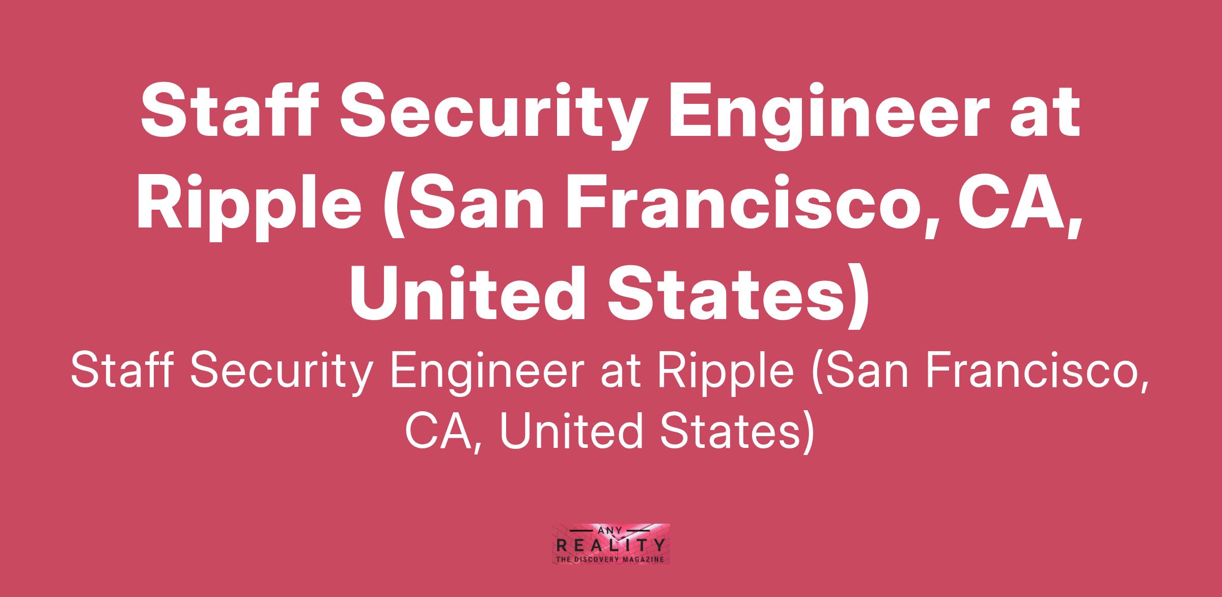Staff Security Engineer at Ripple (San Francisco, CA, United States)