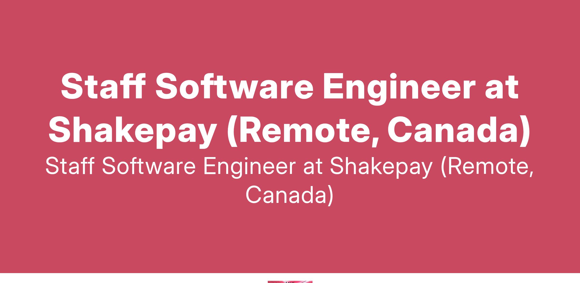 Staff Software Engineer at Shakepay (Remote, Canada)