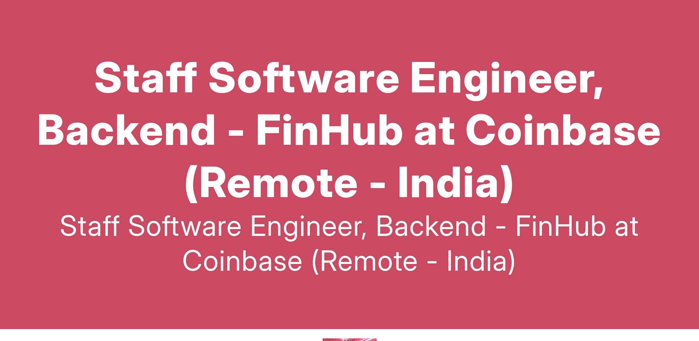 Staff Software Engineer, Backend - FinHub at Coinbase (Remote - India)