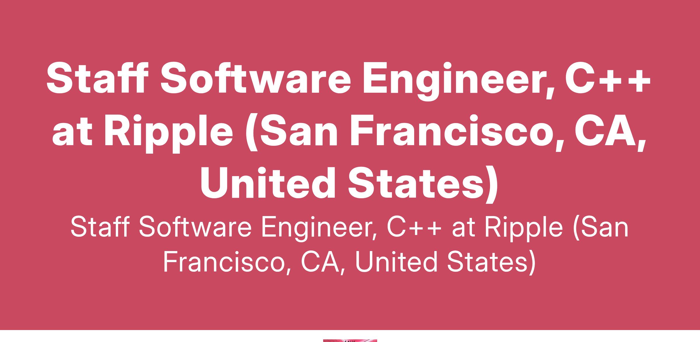 Staff Software Engineer, C++ at Ripple (San Francisco, CA, United States)