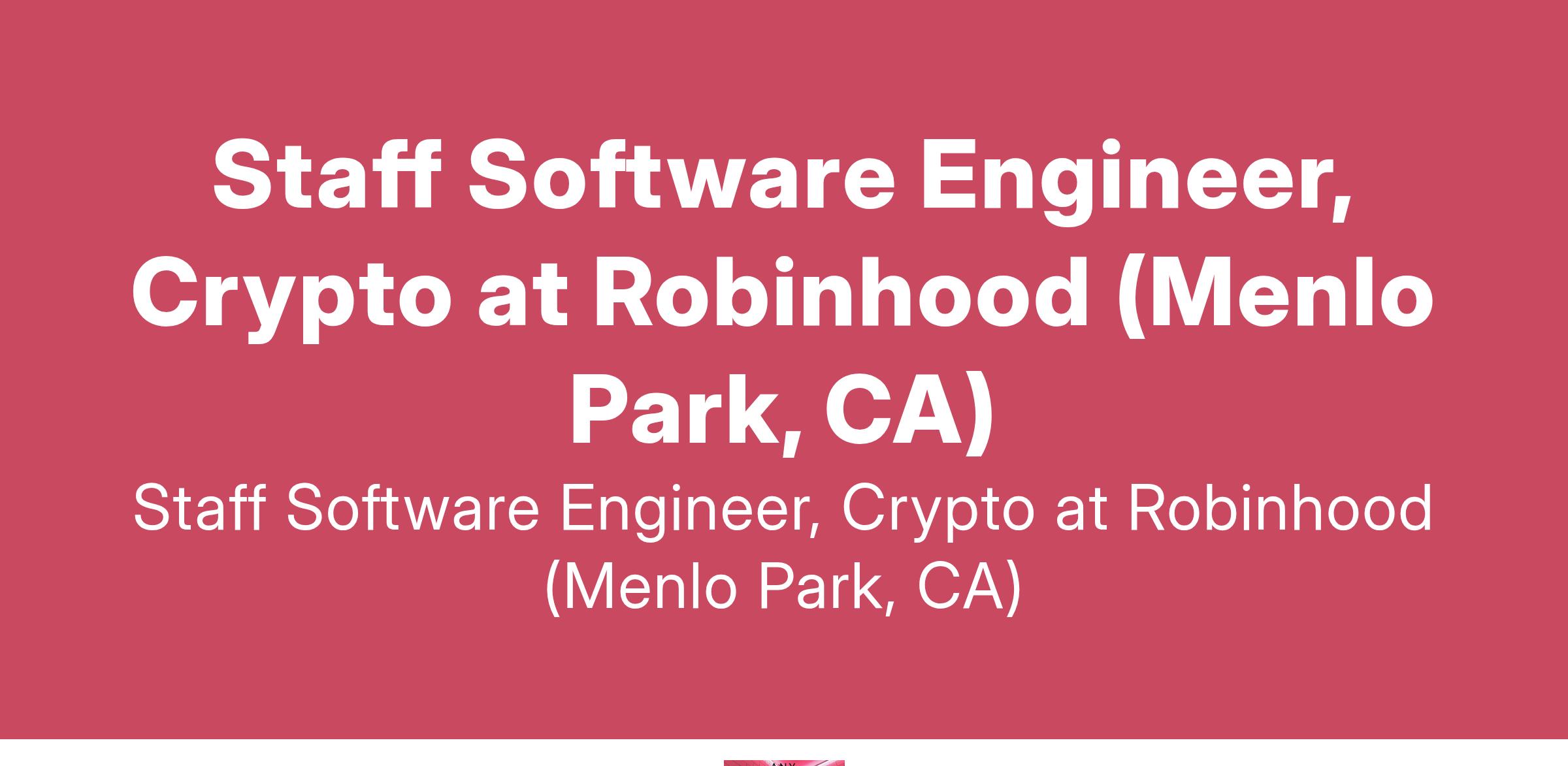 Staff Software Engineer, Crypto at Robinhood (Menlo Park, CA)