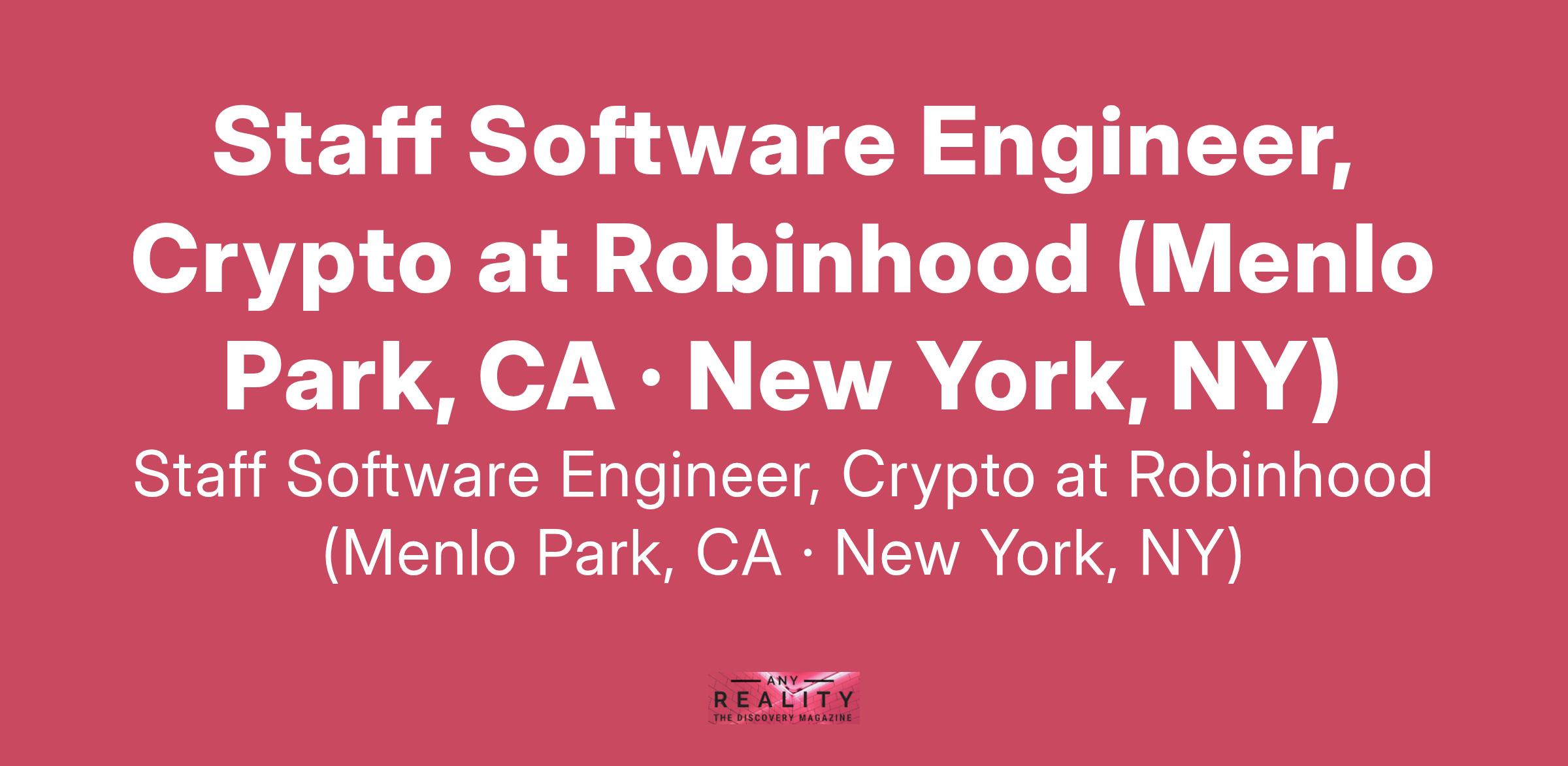 Staff Software Engineer, Crypto at Robinhood (Menlo Park, CA · New York, NY)