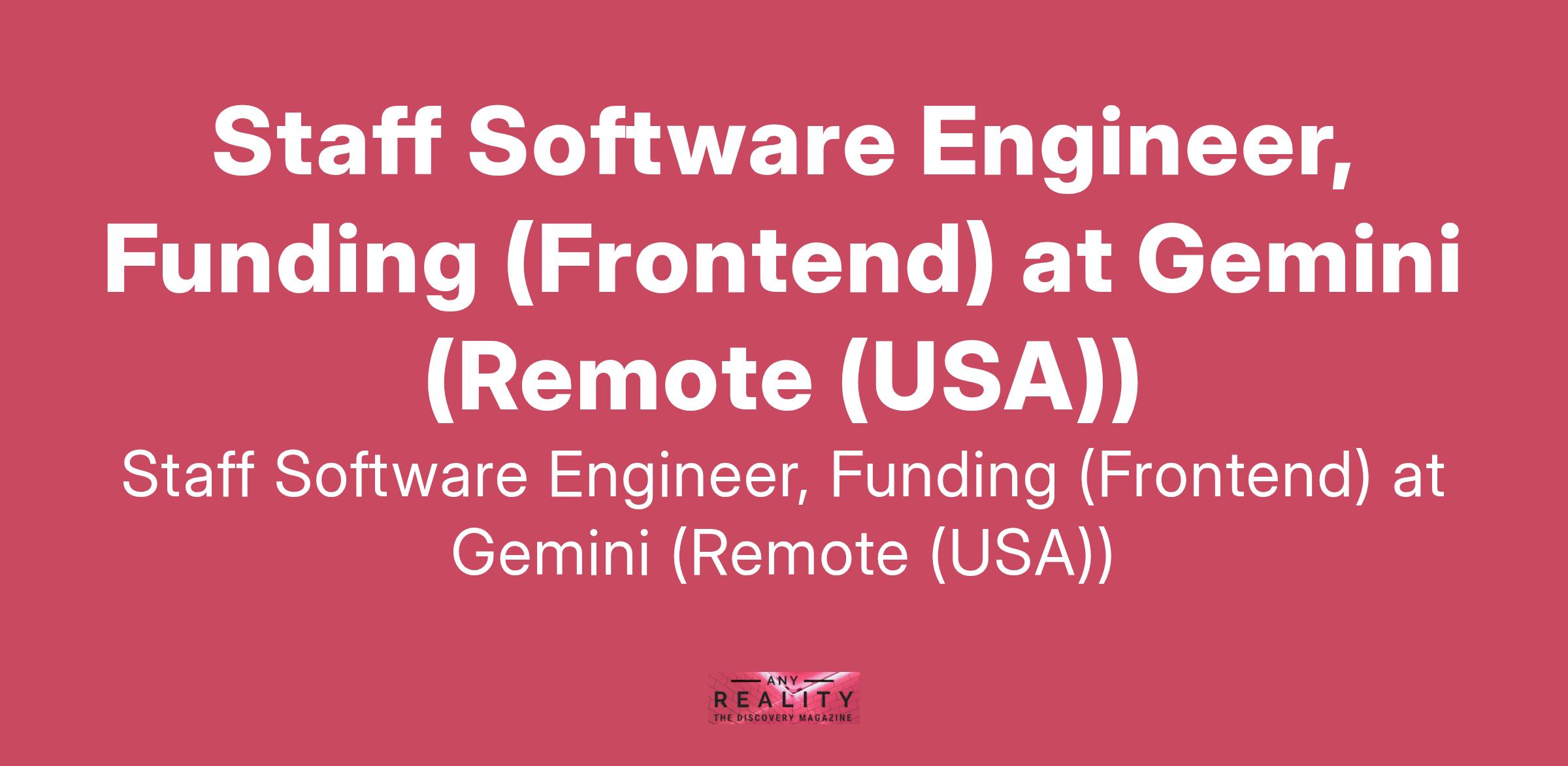Staff Software Engineer, Funding (Frontend) at Gemini (Remote (USA))