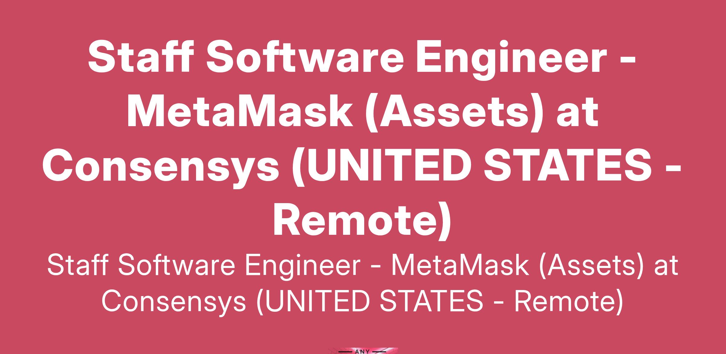 Staff Software Engineer - MetaMask (Assets) at Consensys (UNITED STATES - Remote)