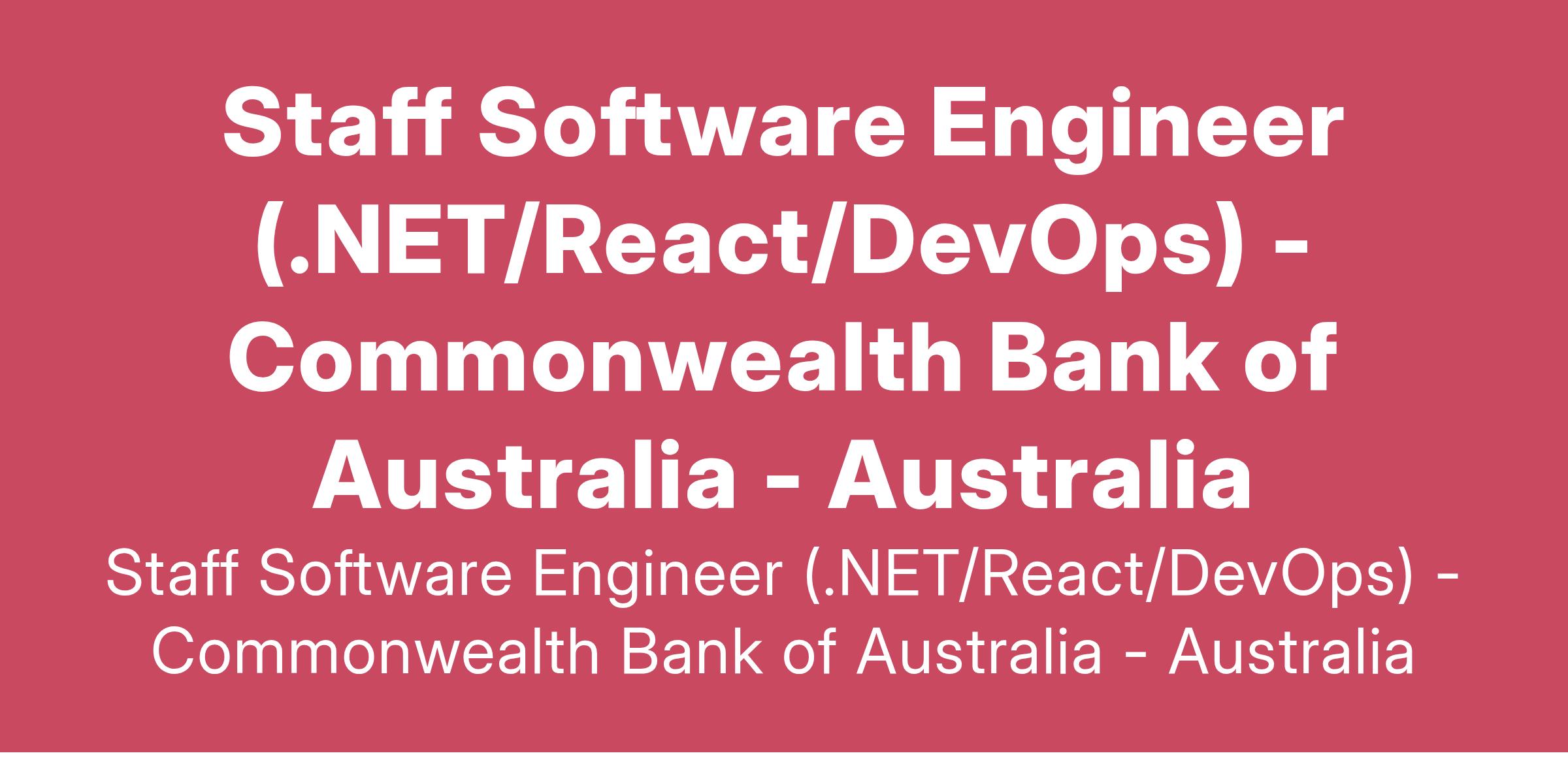 This is a significant opportunity to do help rebuild the craft of Engineering at Commbank as well as influence our culture and do important, impactful Engineering at scale which will make a material difference to our customers, employees and the community in general. If that sounds interesting, we’d like you to be part of the journey.