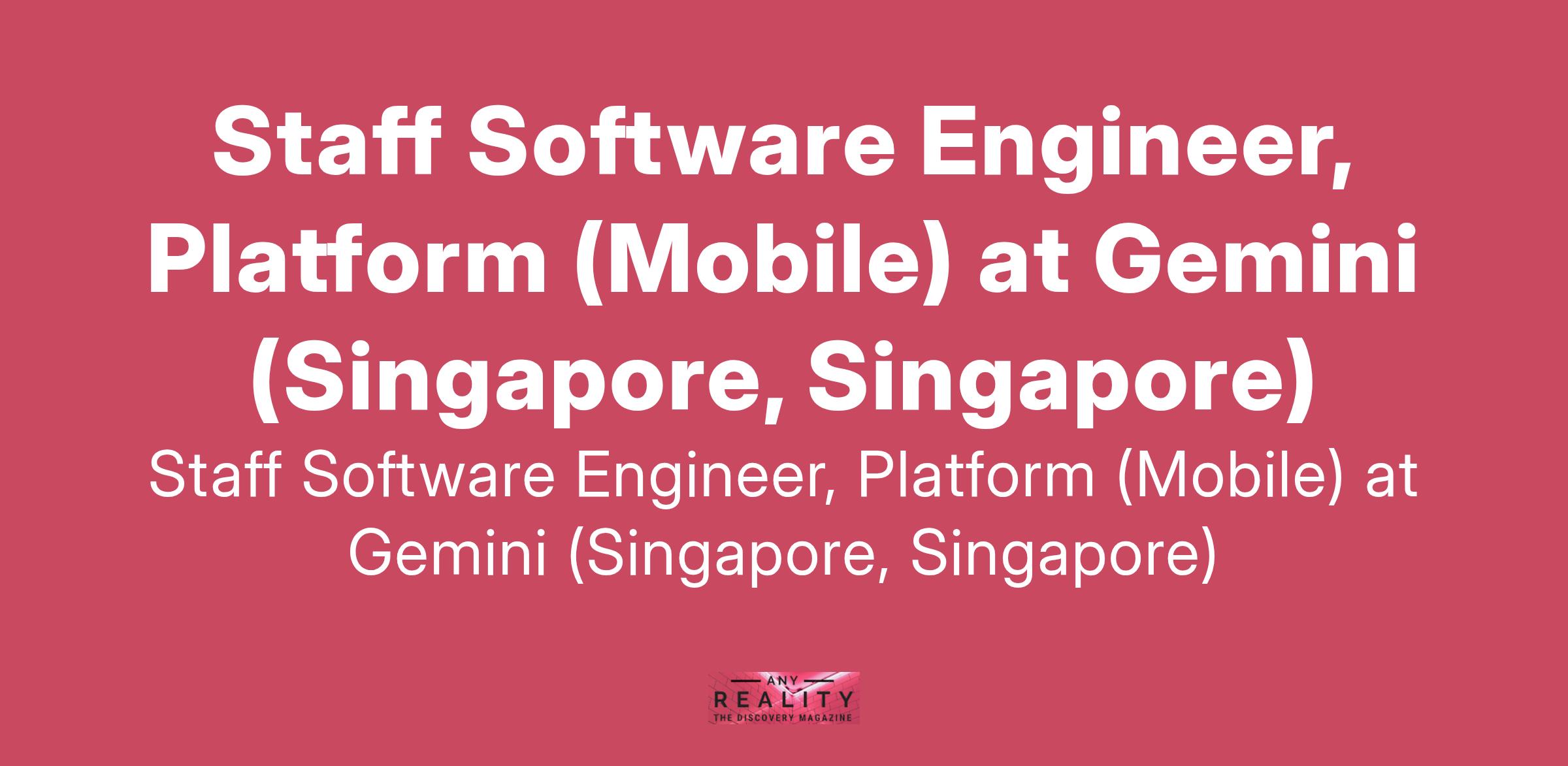 Staff Software Engineer, Platform (Mobile) at Gemini (Singapore, Singapore)