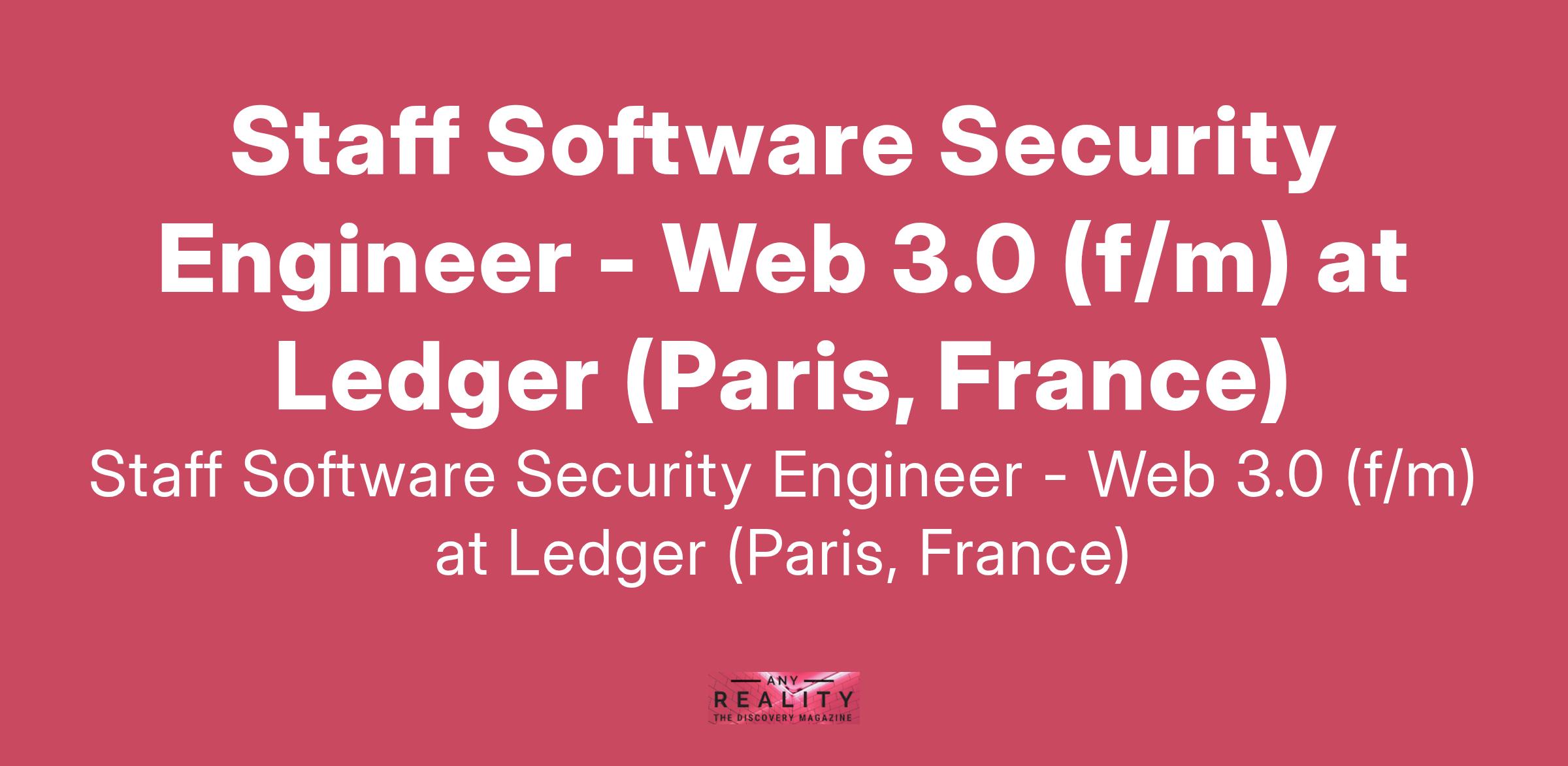 Staff Software Security Engineer - Web 3.0 (f/m) at Ledger (Paris, France)