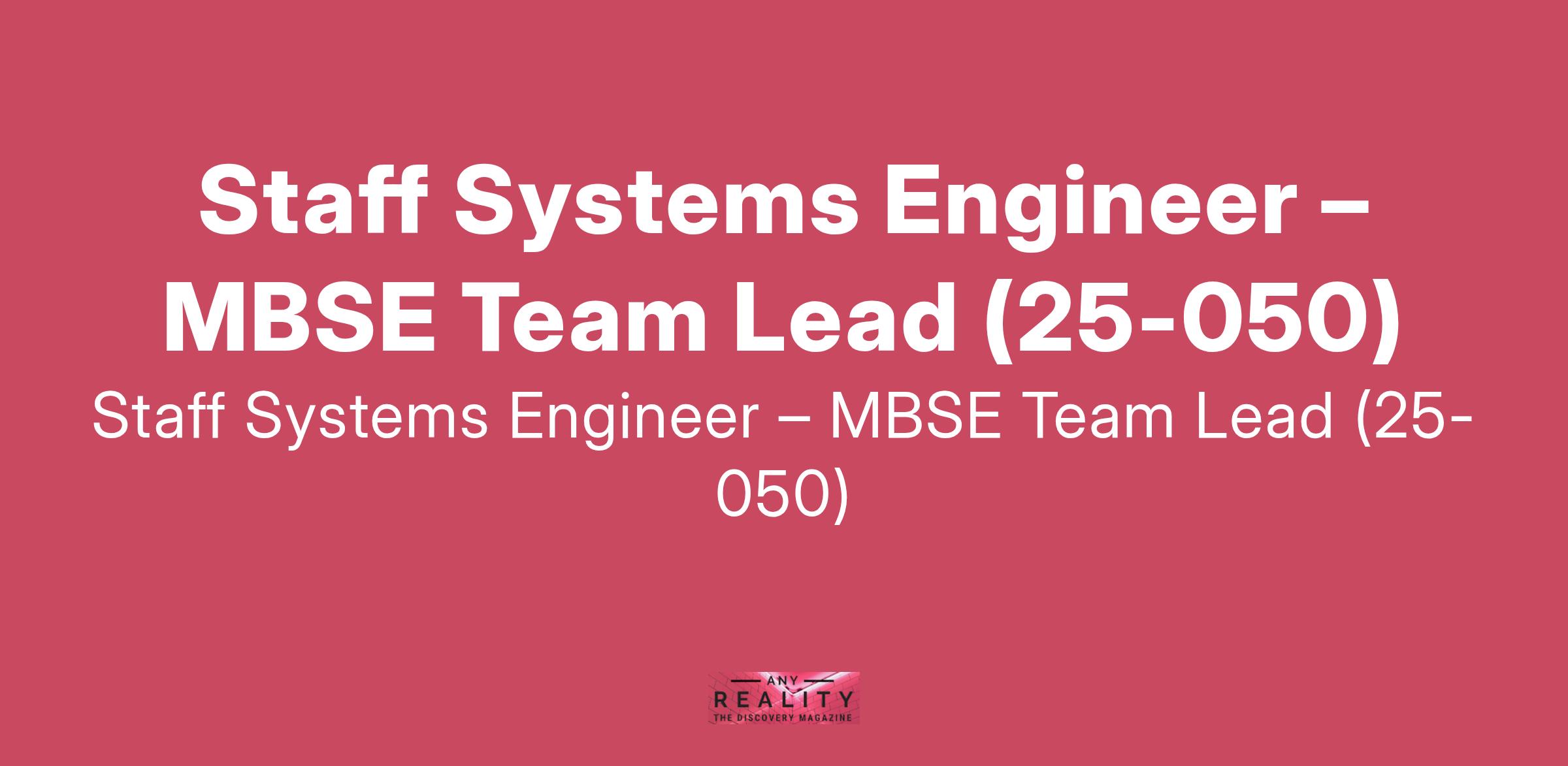 Staff Systems Engineer – MBSE Team Lead (25-050)