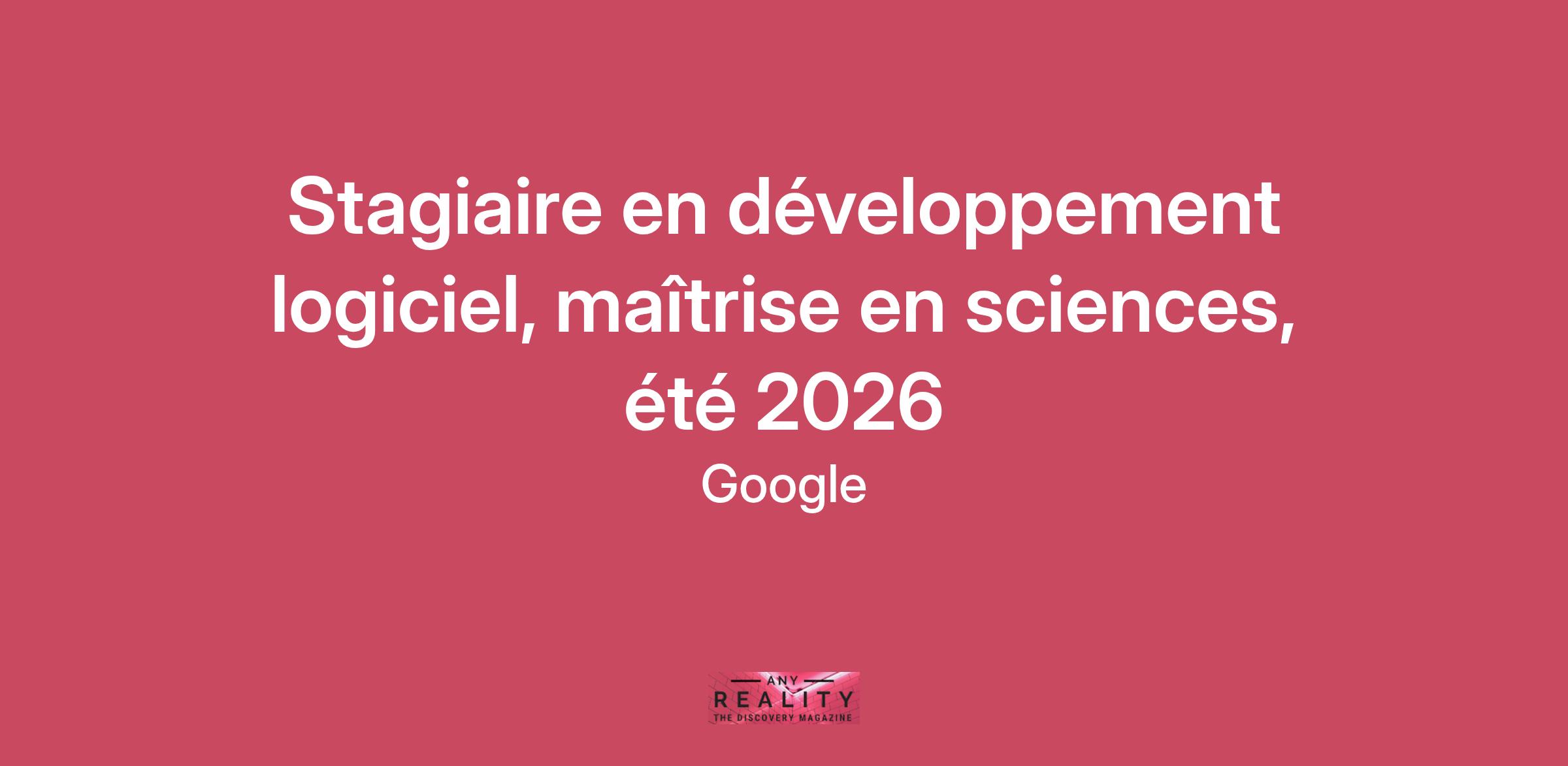 En tant que stagiaire en développement logiciel, vous travaillerez sur un projet particulier qui est essentiel aux besoins de Google. Google s'efforce de faire progresser l'état des réalisations en matière d'informatique et de développer la nouvelle génération de systèmes intelligents pour tous les produits Google. Pour ce faire, nous travaillons sur des projets qui utilisent les dernières techniques informatiques développées par des développeurs logiciels compétents. Qu'il s'agisse de façonner l'avenir du développement durable, d'optimiser les algorithmes ou de lancer des systèmes d'IA avant-gardistes, nos équipes s'efforcent continuellement de faire progresser la science, de faire avancer la société et d'améliorer la vie de milliards de personnes.