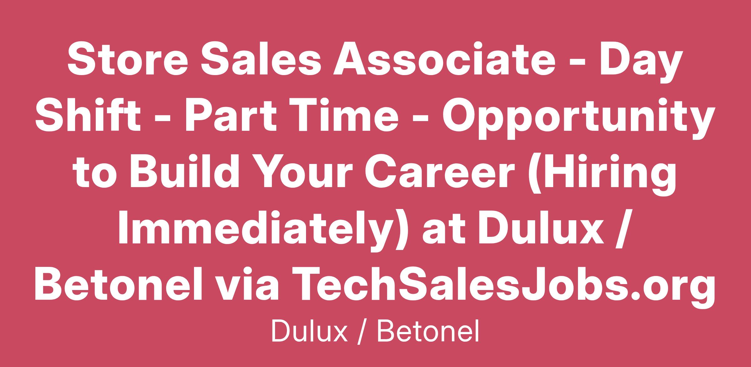 Bétonel/Dulux is Hiring an Retail Store Sales Associate - Opportunity to Build Your Career Message PPGDulux to +1 412-968-8670 to apply for this position via text! This position is for the day shift with typical store hours between Monday - Friday, 7 AM to 6 PM, Saturday, 8 AM to 5 PM, and closed on Sunday Bétonel/Dulux, a PPC Company, is hiring immediately for the position of Part-Time Retail Store Sales Associate. Reporting to the Store Manager, you will be the reason our customers come back! You will build important relationships with our contractors and customers every day. You will greet and assist Bétonel/Dulux customers as they enter the retail store by listening and helping with their paint and supply needs. Retail Store Sales Associate Main Responsibilities: • Advise and serve the needs of customers, including assessing needs, proposing solutions, and dyeing and matching paint products. • Suggest and recommend additional products, such as brushes and rollers. • Work safely in a retail store environment, ensuring the store is clean and well-stocked. • Lift, move, and stock store products while following safety guidelines. Retail Store Sales Associate Qualifications: • Ability to work flexible retail hours, including Saturdays and overtime. • Proficiency with computer and internet applications. • Ability to stoop, kneel, crouch, lift, and carry up to 80 pounds occasionally and 50 pounds regularly. Message PPGDulux to +1 412-968-8670 to apply for this position via text! Do you want to add a little colour to your career? We encourage opportunities for advancement, support your success through collaborative team efforts, and allow you to shine. If you are looking for a great company with career growth potential, then PPC is the company for you. APPLY TODAY. #LI-Sur-site #IQ #Betonel #Dulux PPG pay ranges and benefits can vary by location which allows us to compensate employees competitively in different geographic markets. PPG considers several factors in making compensation decisions including, but not limited to, skill sets, experience and training, qualifications and education, licensure and certifications, and other organizational needs. Other incentives may apply. Our employee benefits programs are designed to support the health and well-being of our employees. Any insurance coverages and benefits will be in accordance with the terms and conditions of the applicable plans and associated governing plan documents. About us: Here at PPG we make it happen, and we seek candidates of the highest integrity and professionalism who share our values, with the commitment and drive to strive today to do better than yesterday - everyday. PPG: WE PROTECT AND BEAUTIFY THE WORLD™ Through leadership in innovation, sustainability and color, PPG helps customers in industrial, transportation, consumer products, and construction markets and aftermarkets to enhance more surfaces in more ways than does any other company.. To learn more, visit and follow @ PPG on Twitter. The PPG Way Every single day at PPG: We partner with customers to create mutual value. We are One PPG to the world. We trust our people every day, in every way. We make it happen. We run it like we own it. We do better today than yesterday - everyday. PPG provides equal opportunity to all candidates and employees. We offer an opportunity to grow and develop your career in an environment that provides a fulfilling workplace for employees, creates an environment for continuous learning, and embraces the ideas and diversity of others. All qualified applicants will receive consideration for employment without regard to sex, pregnancy, race, color, creed, religion, national origin, age, disability status, marital status, sexual orientation, gender identity or expression. If you need assistance to complete your application due to a disability, please email PPG values your feedback on our recruiting process. We encourage you to visit Glassdoor.com and provide feedback on the process, so that we can do better today than yesterday. Benefits will be discussed with you by your recruiter during the hiring process.PandoLogic. Keywords: Store Sales Consultant, Location: Grande Prairie, AB - T8V 2W3