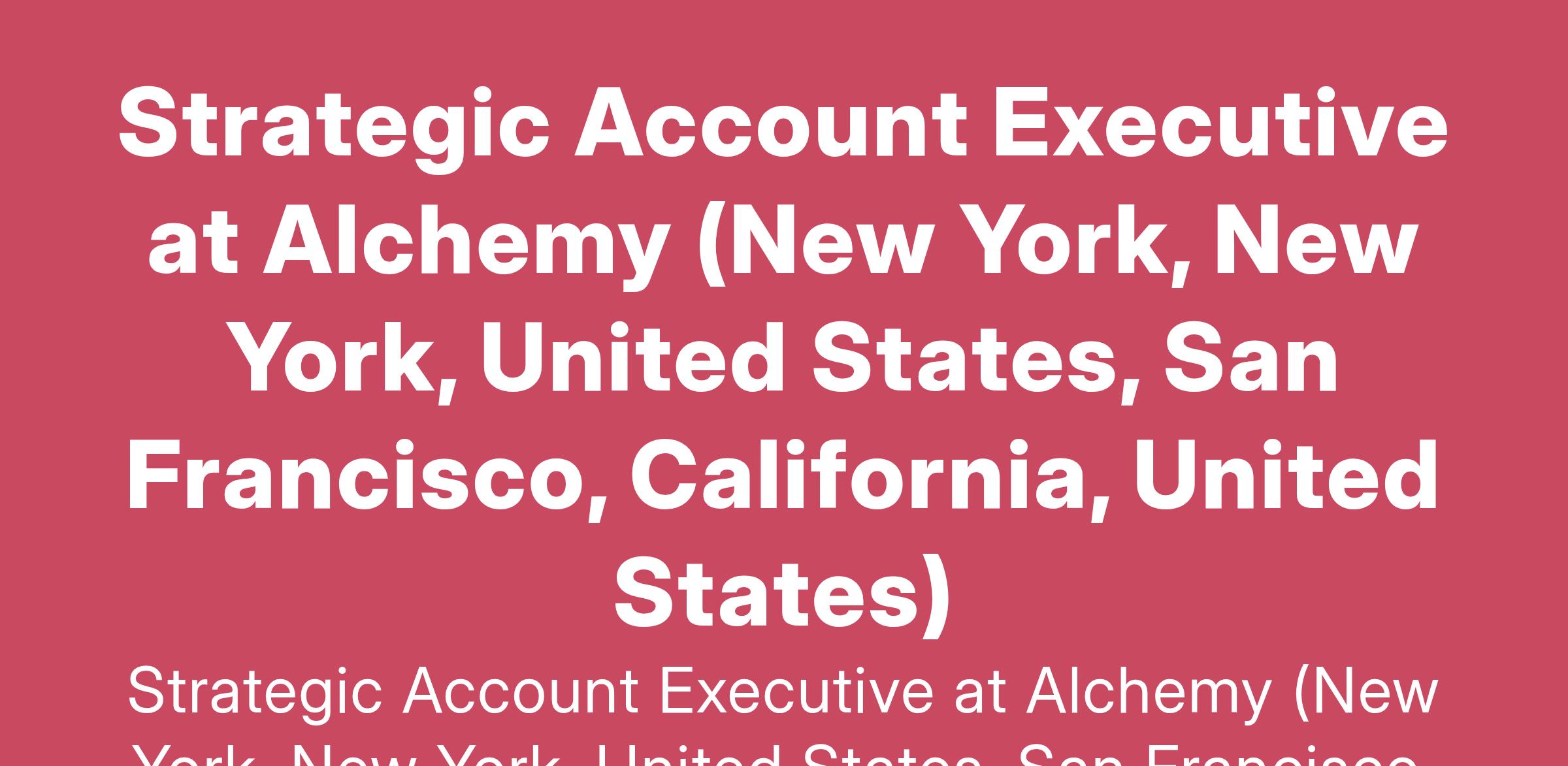 Strategic Account Executive at Alchemy (New York, New York, United States, San Francisco, California, United States)