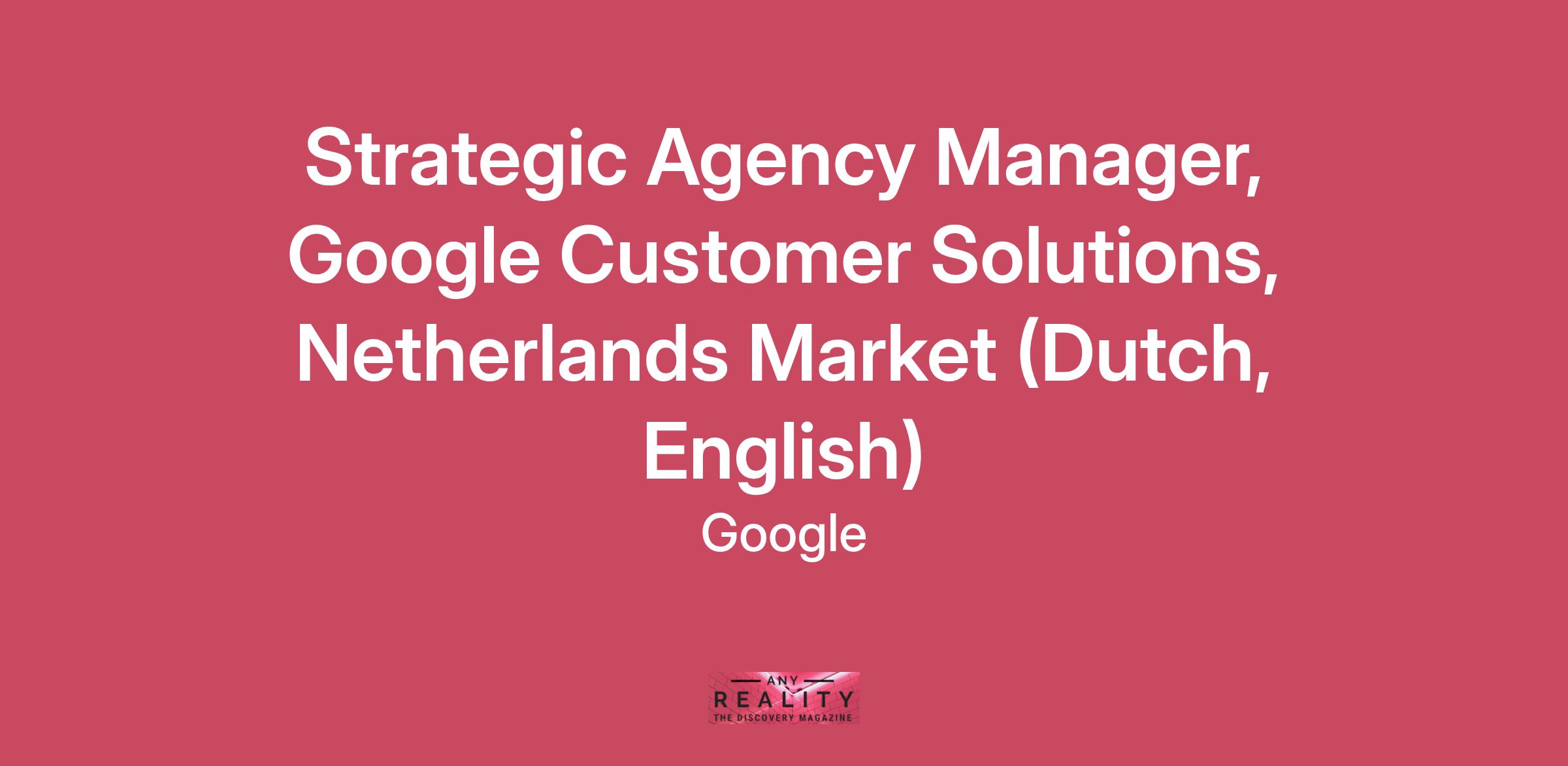The Strategic Agency Partnerships team is a high-performing team that drives customer success by partnering with a wide range of agencies in The Netherlands and Belgium.