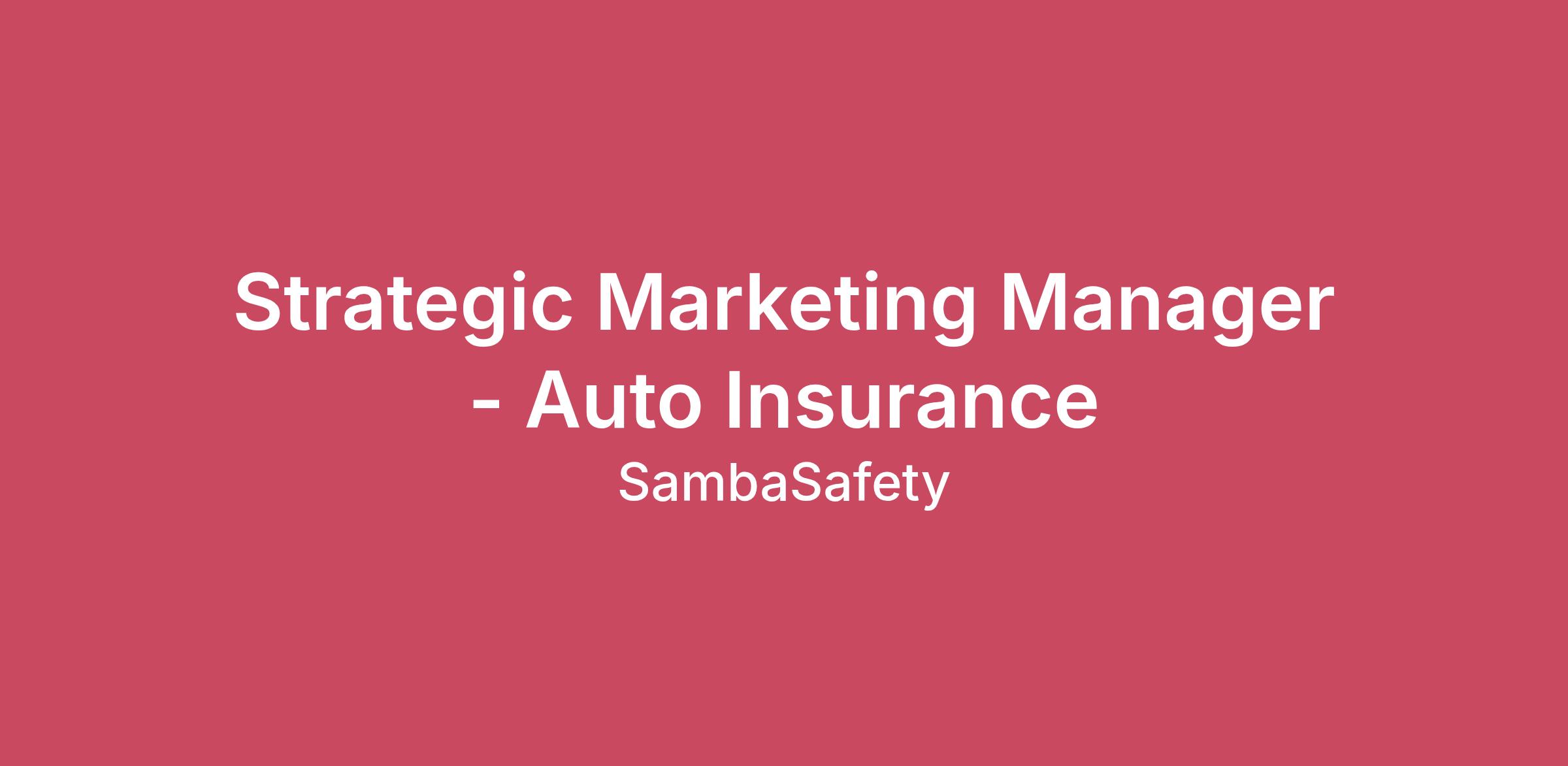 Who we are:Hi, we’re SambaSafety and we offer the industry’s most comprehensive driver monitoring software. Our mission is promoting safer communities by reducing risk through data insights. Companies trust SambaSafety to keep their employees safe on the roads, price and reduce risk, help protect their brand, their bottom line, and our global community. We’ve built an inclusive, supportive, and exceptional culture where every employee is empowered in their role. Don’t take our word for it; we’ve been recognized as a Top Workplace by The Denver Post, Albuquerque Journal, Sacramento Bee, and Built In Colorado. And our employees rate SambaSafety as top-notch, with a rock solid Top Rating on Glassdoor.What You’ll Do:We are seeking a Strategic Marketing Manager with deep expertise in the auto insurance industry to lead go-to-market strategy and marketing alignment across our Auto Insurance and Risk Services businesses. This role is responsible for defining audience strategy, messaging frameworks, and integrated marketing programs that support auto insurance carriers, brokers, MGAs, and risk services partners.This position sits at the intersection of auto insurance domain knowledge, GTM strategy, and cross-functional leadership. You will work closely with Channel leaders, Product Marketing, Content, Sales, and RevOps to ensure our marketing strategy reflects how auto insurance buyers evaluate, adopt, and scale risk and safety solutions.This role is ideal for a marketer who understands auto insurance distribution models, underwriting and loss control priorities, regulatory considerations, long buying cycles, and complex buying committees, and can translate that understanding into clear strategy, prioritization, and measurable impact.Key Responsibilities: Auto Insurance Marketing Strategy & PositioningOwn the marketing strategy for the Auto Insurance and Risk Services segments, ensuring alignment with business objectives and insurance channel priorities.Define persona-based messaging frameworksfor key auto insurance audiences, including:Auto insurance carriersBrokers and MGAsUnderwritersRisk managers and loss control professionalsTranslate auto insurance market trends, claims and loss data themes, regulatory considerations, and buyer pain points into actionable marketing direction.Go-to-Market LeadershipPartner with Channel and Sales leadership to support auto insurance carrier- and broker-led GTM strategies.Lead cross-functional GTM planning for strategic initiatives, including:Auto insurance partner programsProduct launches tied to auto risk, safety, and underwriting insightsExpansion within existing carrier and brokerage relationshipsServe as a key stakeholder in GTM interlock planning, ensuring marketing priorities align with auto insurance revenue, retention, and partner goals.Campaign & Program OversightProvide strategic oversight for integrated marketing programs that support:Strategic and named auto insurance accountsBroker and MGA partner engagementReferral-driven growth within the auto insurance ecosystemCustomer expansion across underwriting, claims, and risk services use casesGuide campaign direction, sequencing, and measurement while partnering with execution teams on implementation.Cross-Functional CollaborationPartner closely with:Content Marketing to ensure industry-accurate, credible auto insurance thought leadershipProduct Marketing to align auto insurance positioning, value propositions, and use casesRevOps to ensure segmentation, account structures, and reporting reflect auto insurance buying and account hierarchiesAct as a central point of alignment across Marketing, Sales, Channel, and Risk Services teams.Insights, Performance & OptimizationDefine success metrics focused on engagement quality, sales alignment, pipeline influence, and partner impact within auto insurance.Analyze performance trends and provide strategic recommendations to optimize GTM approach.Continuously refine audience strategy and messaging based on insights from auto insurance customers and partners.What You'll Need: 7+ years of experience in strategic marketing, segment marketing, or GTM roles, with a strong focus on auto insuranceProven experience marketing to:Auto insurance carriersBrokers, MGAs, or underwriting organizationsRisk management or loss control teamsDeep understanding of:Auto insurance buying cycles and decision-making processesCarrier and broker distribution modelsPartner- and channel-led growthPersona-based and account-centric marketingStrong strategic thinker with the ability to influence senior stakeholdersComfortable operating at both executive strategy and program planning levelsExcellent communicator who can align cross-functional teams around a shared auto insurance GTM strategyBenefits and Perks:Flexible and generous Paid Time Off and Paid Volunteer Days401k Employer Match Generous Healthcare Benefits Up to 12 weeks paid time off for maternity leave based on tenureWellness &Tuition ReimbursementFlexible Work ArrangementsLots of SambaSafety swag & SambaSafety Events Our team of talented and committed safety professionals is exceptional. At SambaSafety we strive to foster an inclusive culture that supports, encourages and celebrates a wide array of diversity. We are committed to create a space where all employees can show up as their authentic selves every day, and we work to advance employee equality, diversity and inclusion.SambaSafety provides equal employment opportunities to all employees and applicants for employment without regard to race, color, religion, sex, national origin, age, disability, gender identity, and expression or genetics.Come join us to find out for yourself what all the excitement is about!